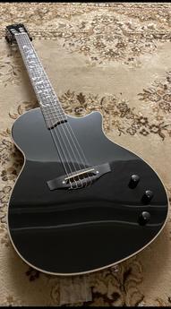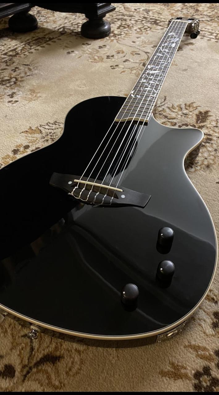 Seřízen dohmat. Vyměněny struny a dřevěné potenciometr. Kufr v ceně. Zakoupena před pů rokem. Hraná minimalně. K vyzkoušení a převzetí v Praze. Prosím sms. Díky Odkaz: https://www.thomann.de/cz/harley_benton_nashville_nylon_plus_black.htm