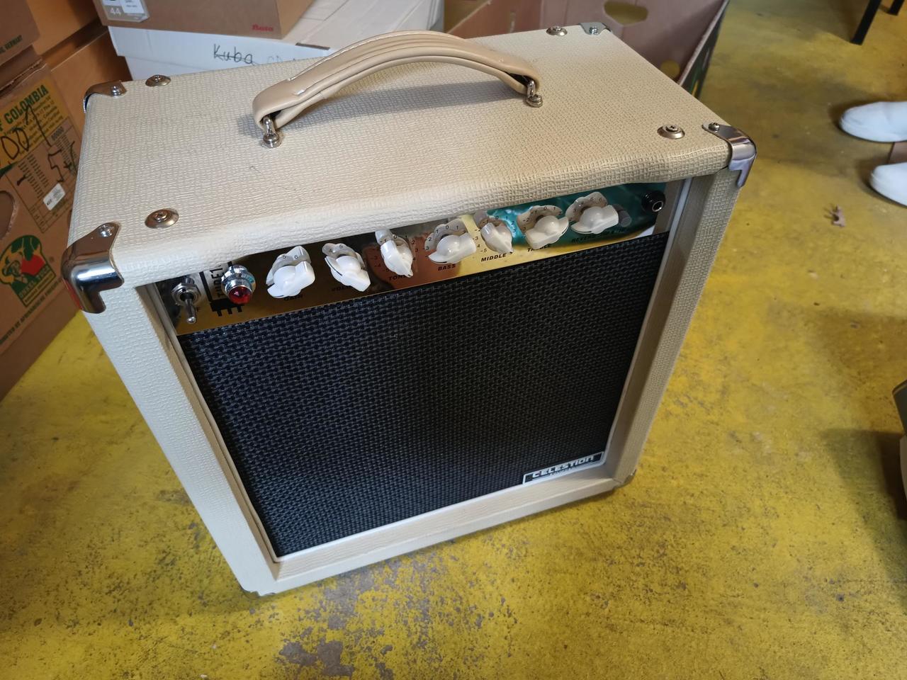 Hrané lampové kombo Harley Benton. Pro začátečníka dobrý vstup do lampového zvuku. Na to, že je to tak levný to má hodně korekcí i efektovou smyčku, můžete snížit watáž pro nižší hlasitost. Kupoval jsem kdysi jako bazar. Cena kolem 3.500,- ?