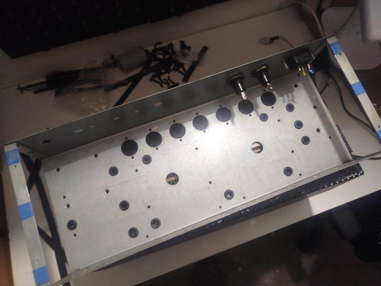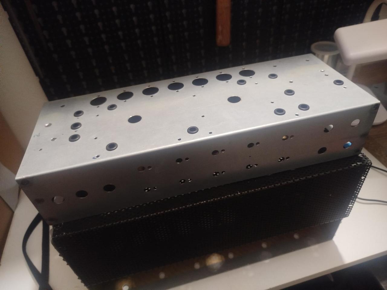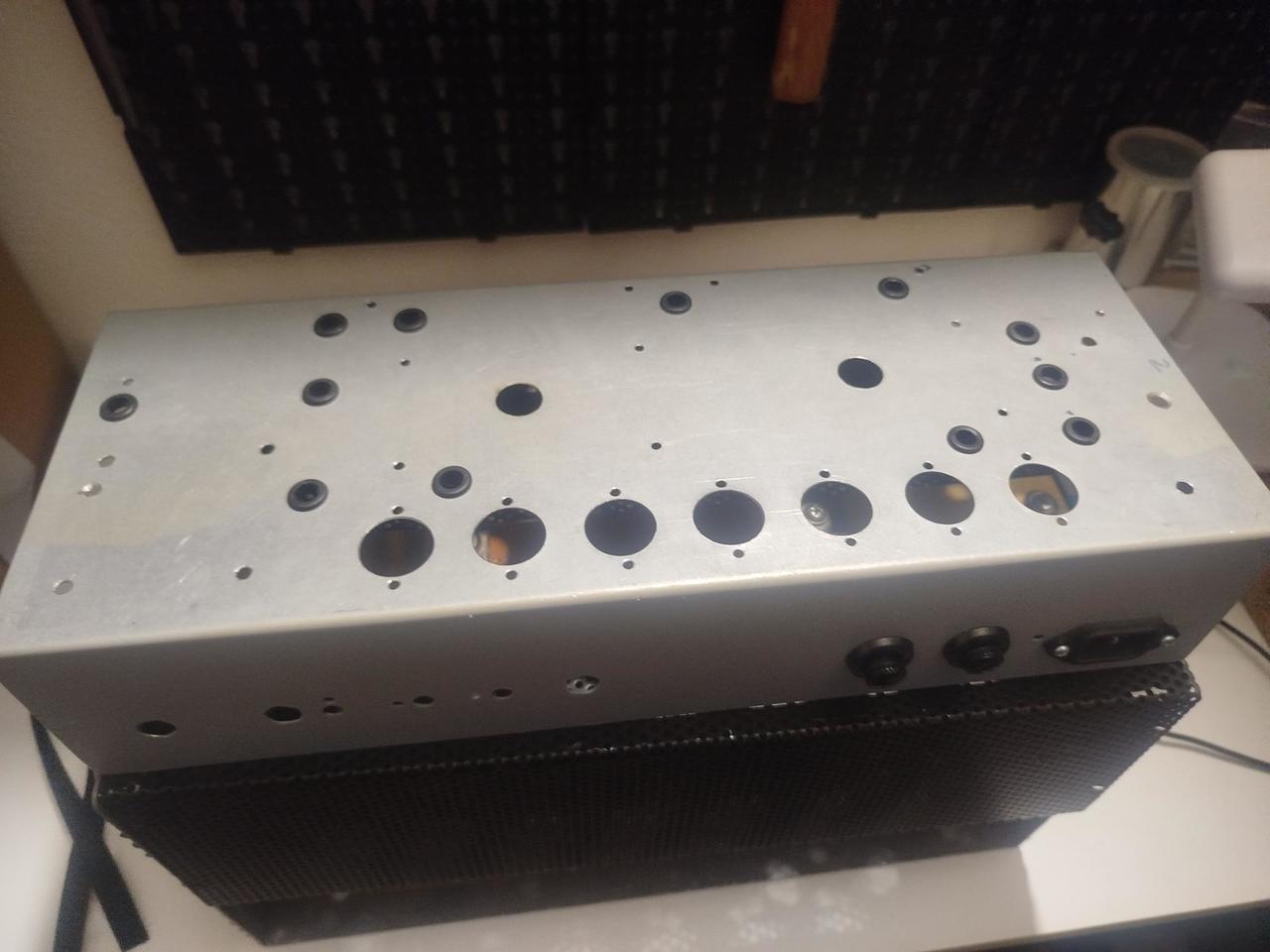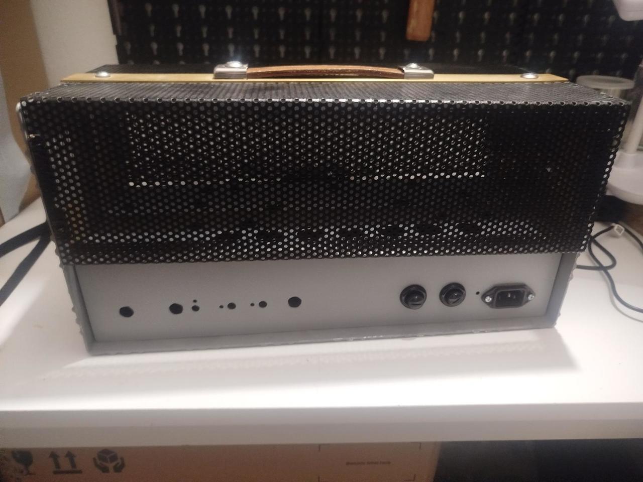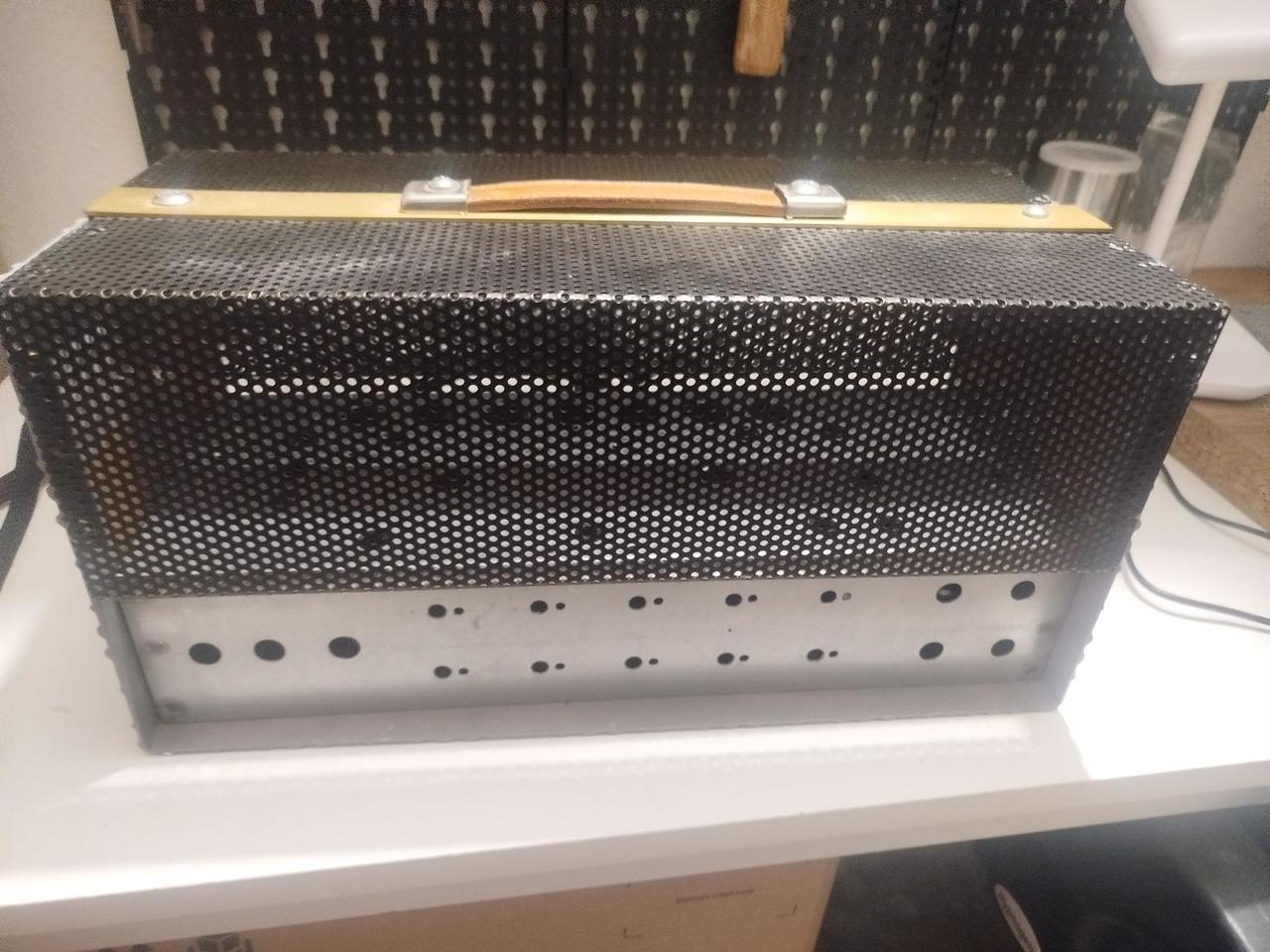 Prodám šasí + headshell viz foto. Mosazný "faceplate" ala Marshall. 41x18,5x20 (ŠxHxV) šasí vysoké 8 cm