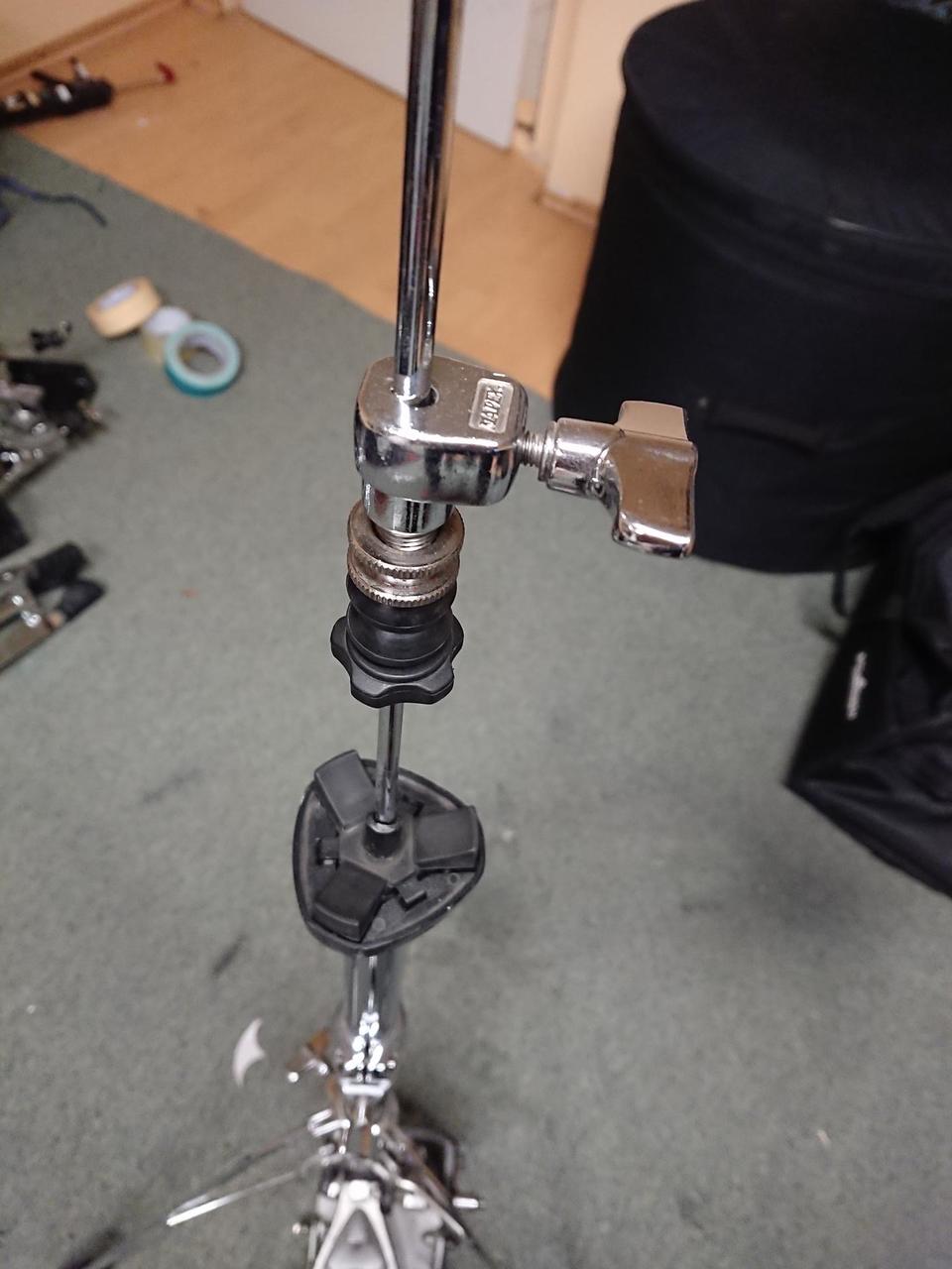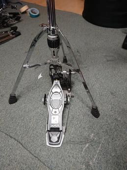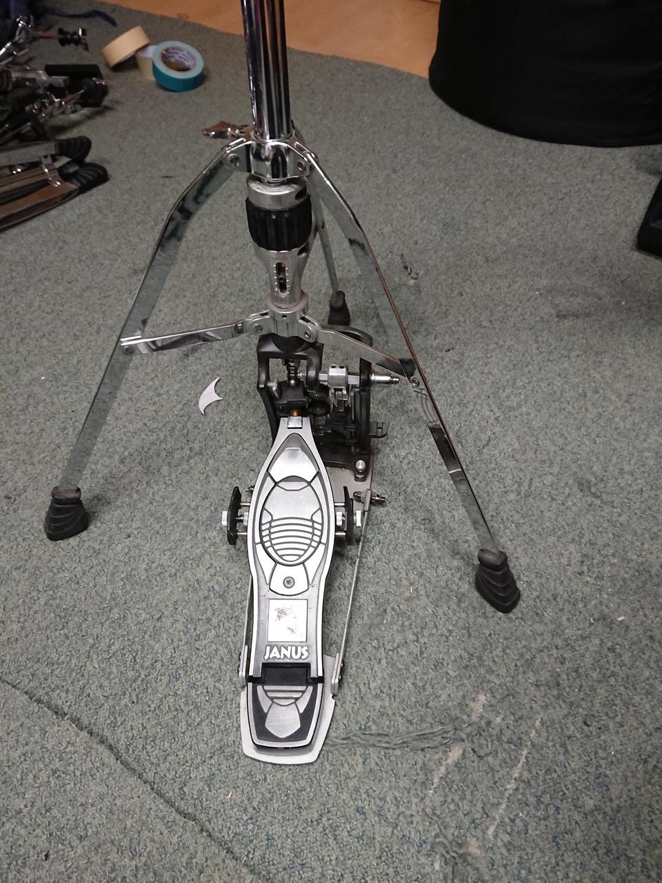 Prodám tento starý hi-hat stojan. Později se z Janusu stal Mapex, takže je to něco podobného. Má to mechanismus na připojení kardanu od dvojšlapky a pedálem lze pak hýbat ze strany na stranu a podle toho ovládat hi-hat, nebo dvojšlapku. Dá se to použít, ale jako dvojšlapka to není nic moc, spíš lze použít jako samostaný stojan hi-hat. Přenechám za symbolickou cenu, nemám pro to využití.