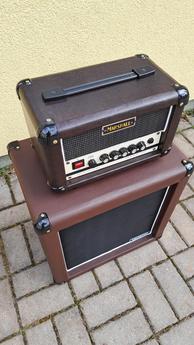 Prodám jednokanálový zesilovač (postavený panem Maškem) s 8-ohmovým výstupem a výkonem 5W, a to z důvodu koupě jiného aparátu. Preamp možnost osadit buď ECC83 nebo 6N2P (volba přepínačem, nyní osazena 6N2P), v konci EL84. Zesilovač má zpožďovací spínání anodového napětí (místo standby) a regulovatelný chladící větrák, který lze vypnout. Schéma zapojení součástí, stejně tak profi propojovací kabel. Rozměry: délka 34 cm, hloubka 20cm. Box je z topolové překližky a vyztužen dřevěnými latěmi, osazen Celestion 8-ohm V-30 (12", 60W). Rozměry 46x47x30. Původní thomann box upravený vyztužením s jinou povrchovou úpravou. V tomto kompletu velmi pěkný plný zvuk s krásnými spodními frekvencemi. Možno plné vyzkoušení v Praze Řeporyjích.