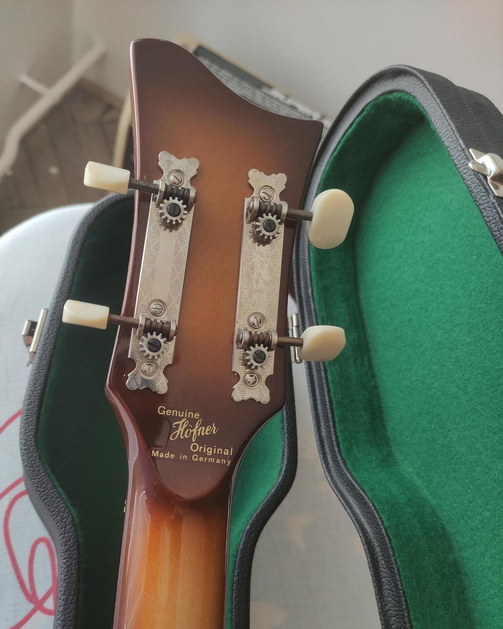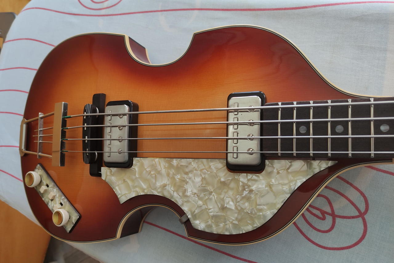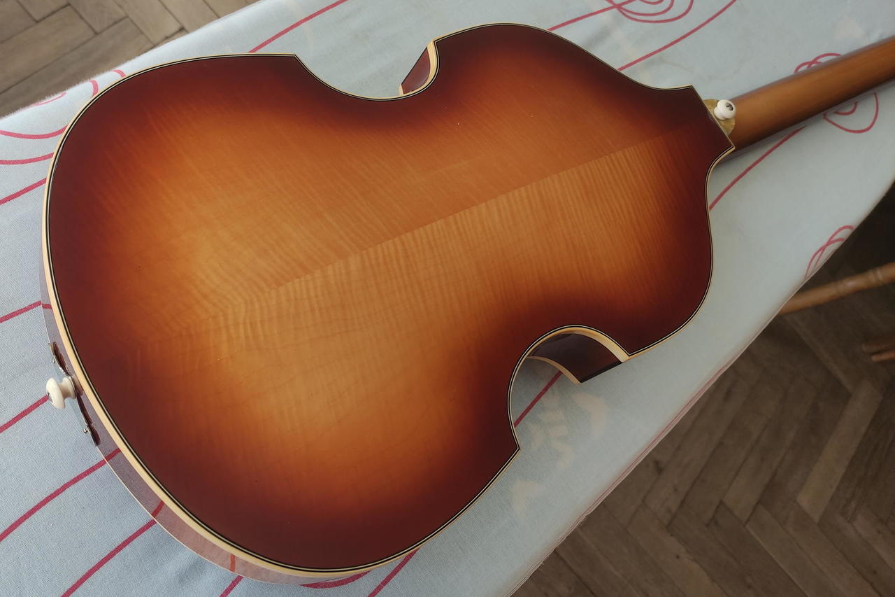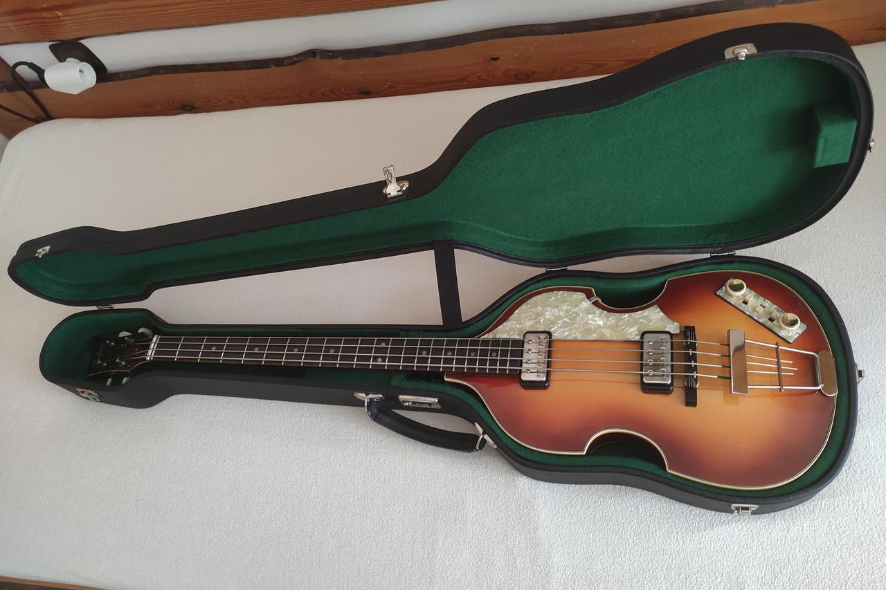 Prodám elektrickou lubovou baskytaru Hofner 500/1 Vintage '62 Reissue Violin Bass, vyrobenou v německém Bubenreuthu v roce 2012, s originálním luxusním černým kufrem Höfner, vintage koženým řemenem Höfner a klíčem výztuhy krku. Baskytara je ve stavu nového kusu, má jen mírné stopy oxidace na kovových částech. Na tento model hrál v počátcích své kariéry Paul McCartney z kapely Beatles. U Thomanna se podobný model nyní prodává za 73 600 Kč.