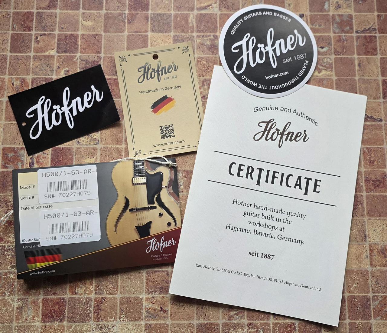 Höfner H500/1-63-AR-0 Artist Violin Beatle Ba