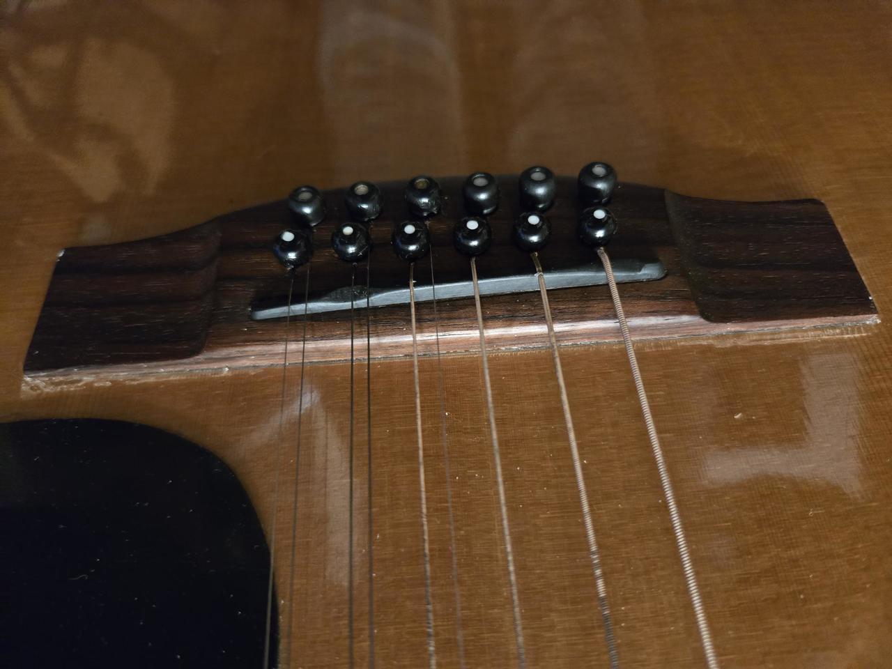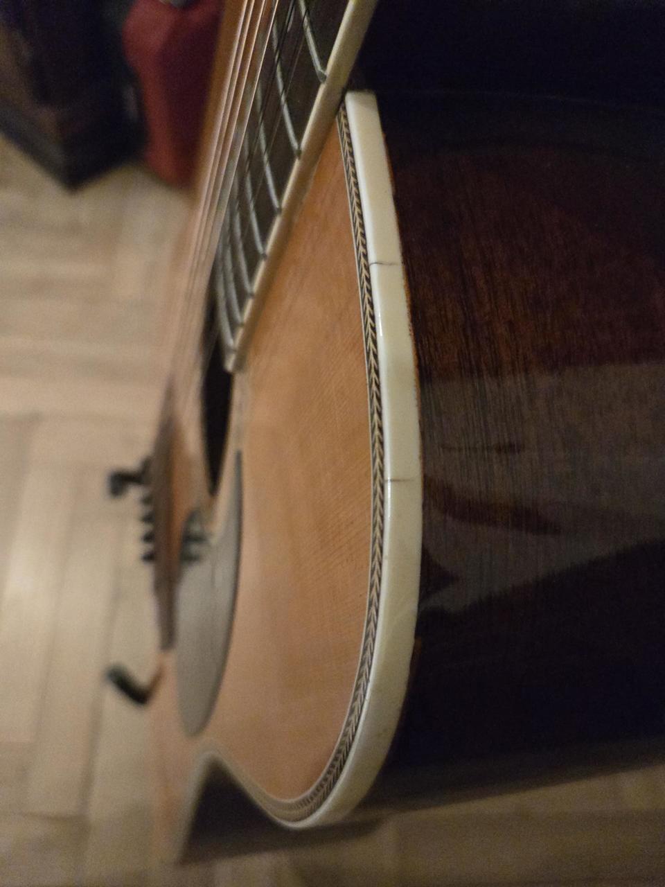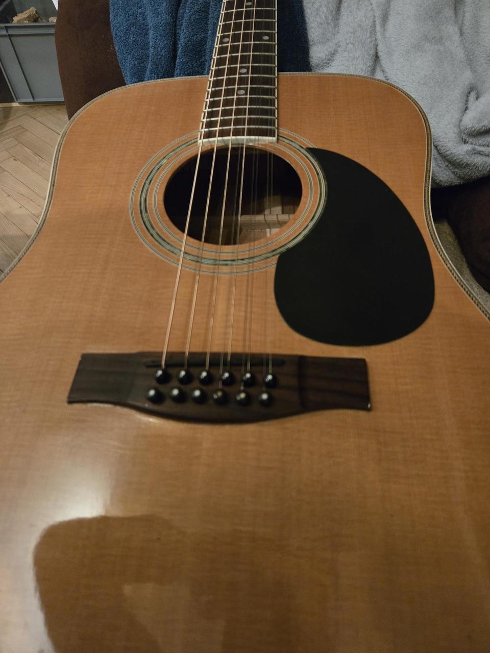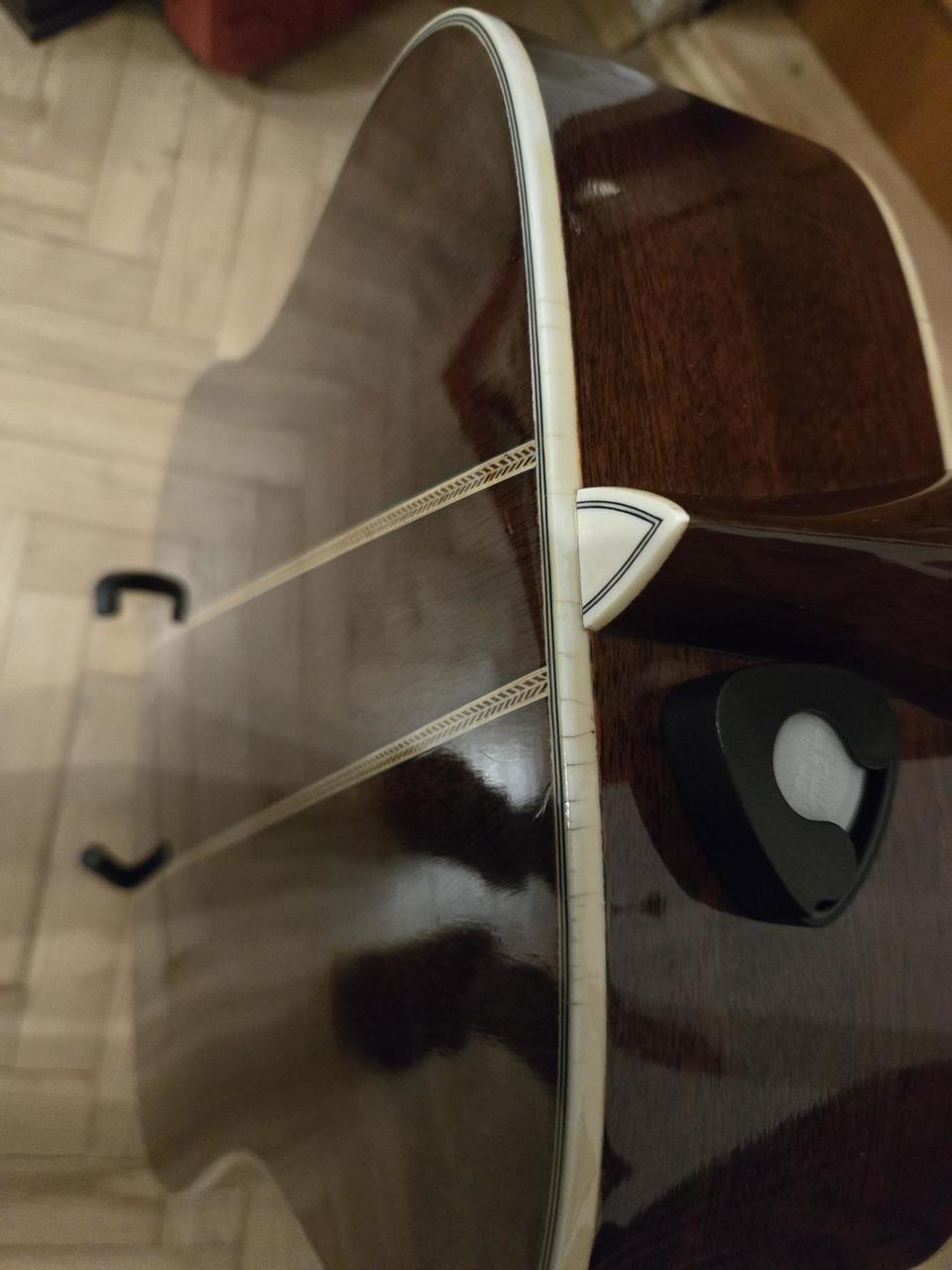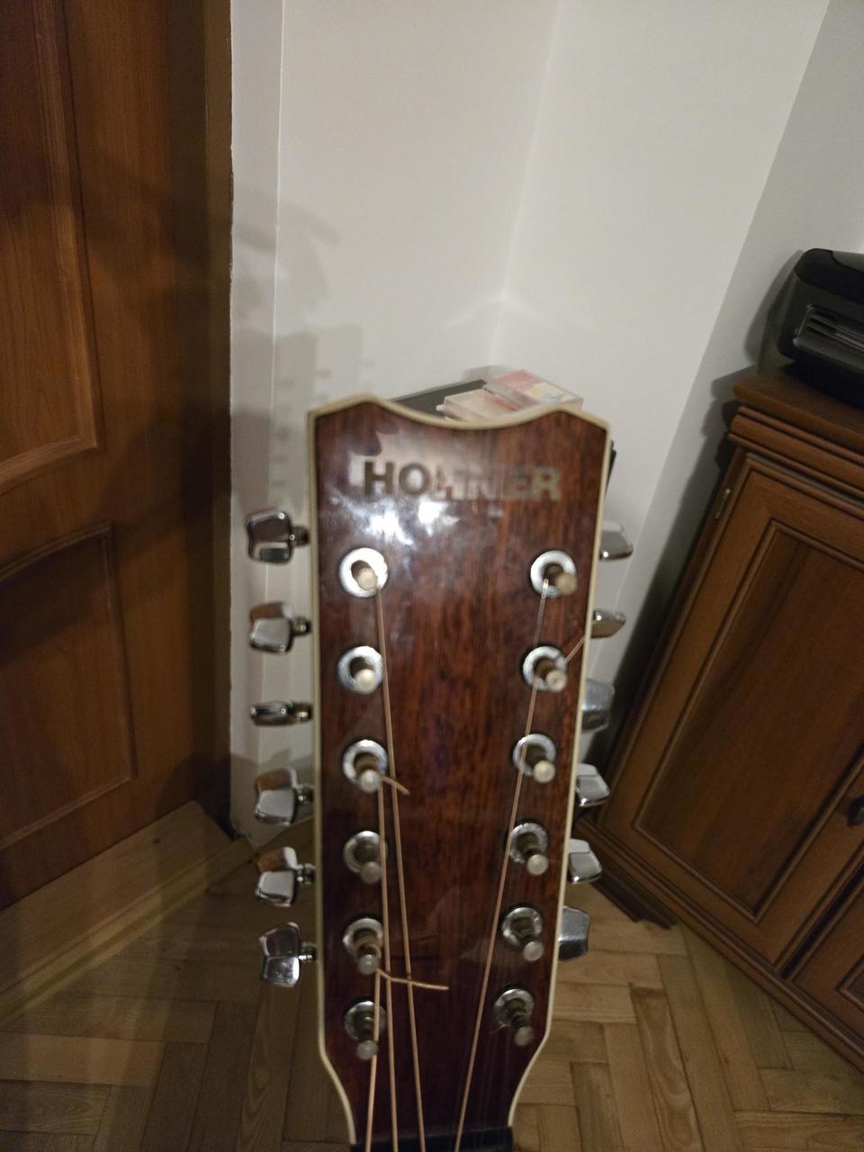 Prodám Hohner 9 strunka předělaná z 12 strunky,90 léta,funkční,hezký zvuk. Struny Elixír 10-47. Má něco za sebou,jemně popraskaná lemovka po celém obvodu,poškrábaná u kobylky. Pouze osobní odběr vzhledem k vadám.Hmatník a pražce velice dobrý stav.Nultý pražec 47 mm. Koupil jsem nedávno,ale nesedí mi krk.