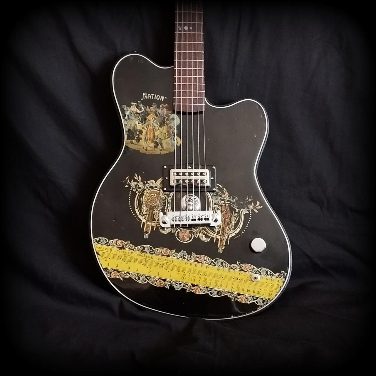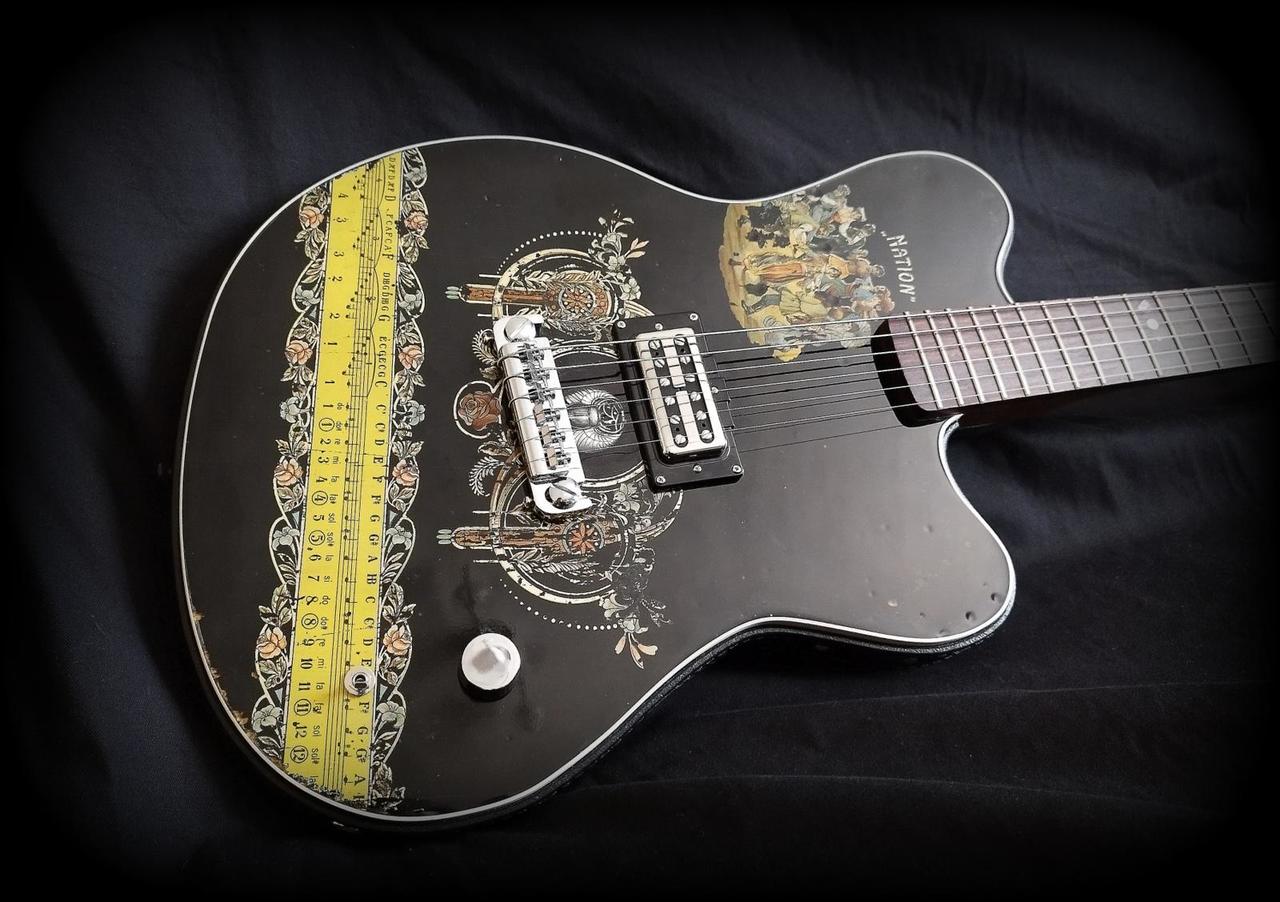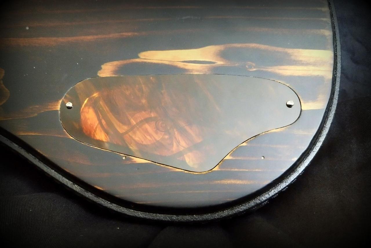 Tělo kytary je vyrobeno z borovice (stáří min. 100 let) Top je ze staré citery zhruba stejného věku. Mahagonový krk je o něco mladší (cca 70let) Hmatník klasický palisandr. Snímač - Duesenberg Little Toaster Kobylka - Goldo Lad.mechaniky - Kluson Traditional Single Line Ovládání - Volume + rozpínání cívek snímače Povrch.úprava je Epoxy pryskyřice Kytara je lehoučká - 3,3 kg Nulák má 42mm Cena je bez jakéhokoliv obalu.Jen za kytaru. Gigbag + cena za něj