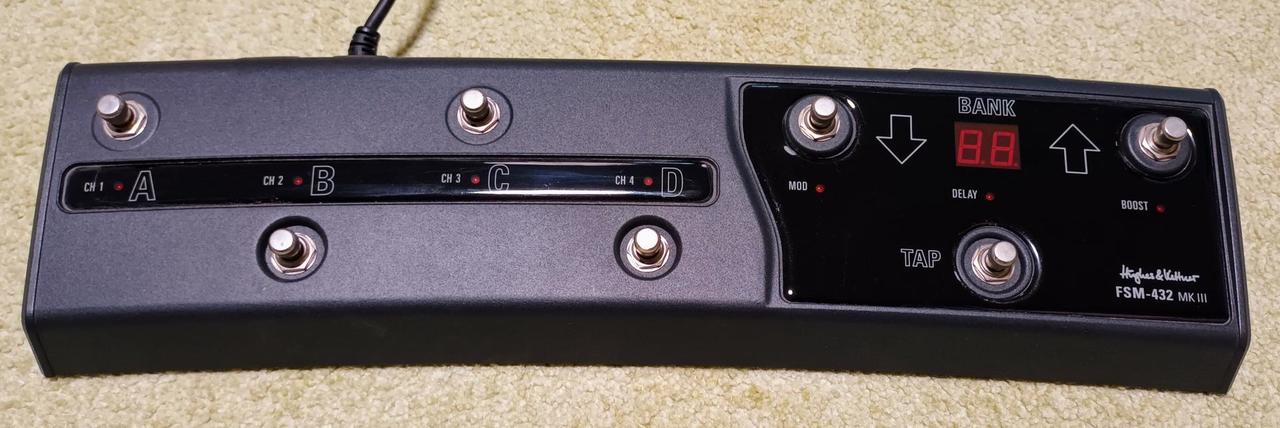 Téměř nepoužívaný z čistého, domácího, nekuřáckého prostředí. TOP stav. Stejně tak originální footswitch FSM-432 MKIII. Hraje fantasticky. 36W 4x EL84, v předzesilovači 3x 12AX7. 4 kanály: Clean, Crunch, Lead, Ultra. Součástí je Tap Delay a Modulation (Chorus, Flanger, Phaser, Tremolo) Ovladatelné přes Midi (In/Out) K aparátu je přepravní brašna.