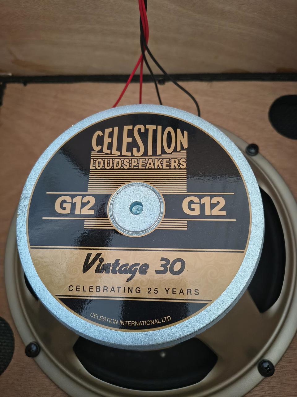 Prodám zmíněný kytarový box.Box vyroben celý z překližky,repro Celestion v30-vyroční model k 25 výročí(viz foto).Hraje úžasně,a výborně tlačí! Výborný hutný zvuk, který jen tak u 1x12 bedny nenajdete(Bass reflex).Hrál sem sním koncerty(metal),a pak hodně ve studiu.Box z roku 2011, takže určitě jsou viditelné malé nedostatky na kožence,ale funkční na 100%.Velká výhoda je hmotnost 12,5kg.