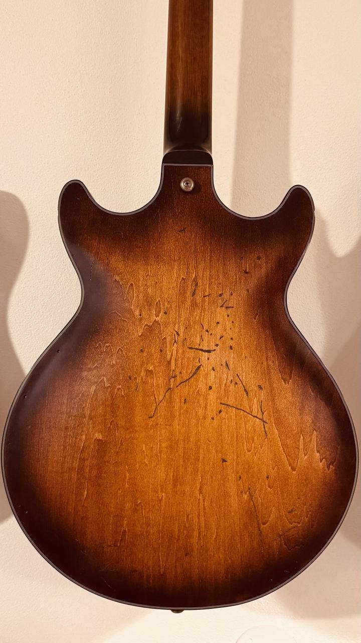 Nabízím k prodeji semiakustickou kytaru Ibanez AMV10A-TCL-12-01 ze speciální série Artcore Vintage. Tento nástroj kombinuje klasický zvuk „lubovek“ s unikátní povrchovou úpravou Distressed, která kytaru zbavuje moderního vysokého lesku a dává jí autentický vzhled starého, vyhraného nástroje.