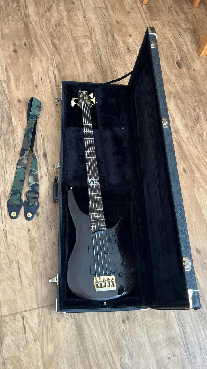 Prodám Ibanez K5 (signature model Fieldy Korn). Druhá generace, tělo mahagon, krk javor/bubinga, hmatník palisand, váha 3,3Kg, nultý pražec 45mm. Korea 2006, včetně původního hardcase a pásu se strap lock. Vyhraný nástroj se skvělým, díky ekvalizéru velmi univerzálním zvukem, samozřejmě lze nastavit typický zvuk Korn, ale nejen to. Na těle je pod krkovým snímačem vydřené dřevo, které původní majitel přetřel lakem v odpovídající barvě. Více info a foto na mail.