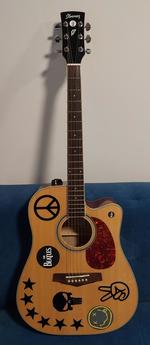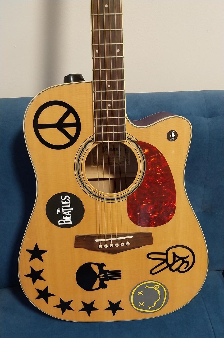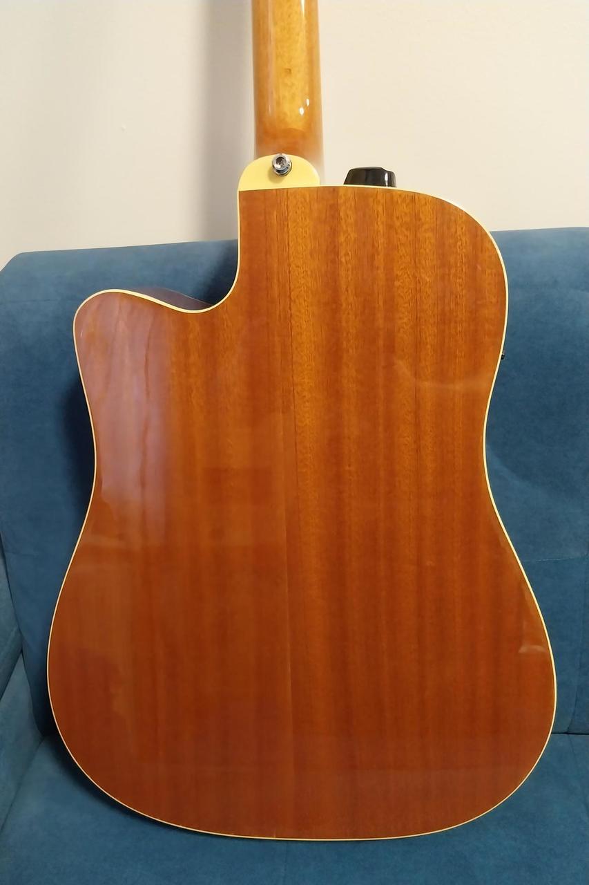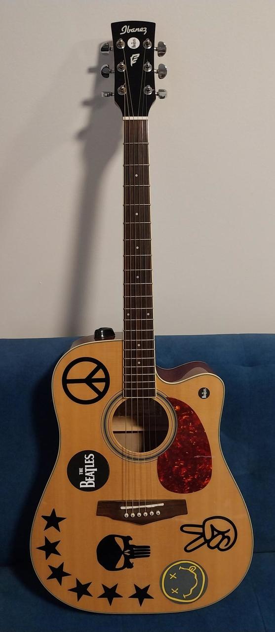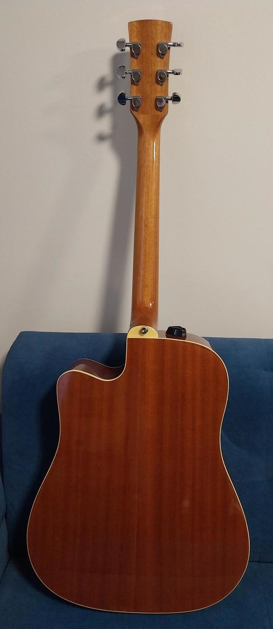 Kytara je v dobrém stavu. Původní plastový nultý pražec je vyměněn za kostěný. A původní černý pickguard je vyměněn za pickguard ve stylu želvoviny. Důvod prodeje je, že mám ještě jednu elektroakustiku a proto nemám pro tuhle holku využití a leží mi doma.