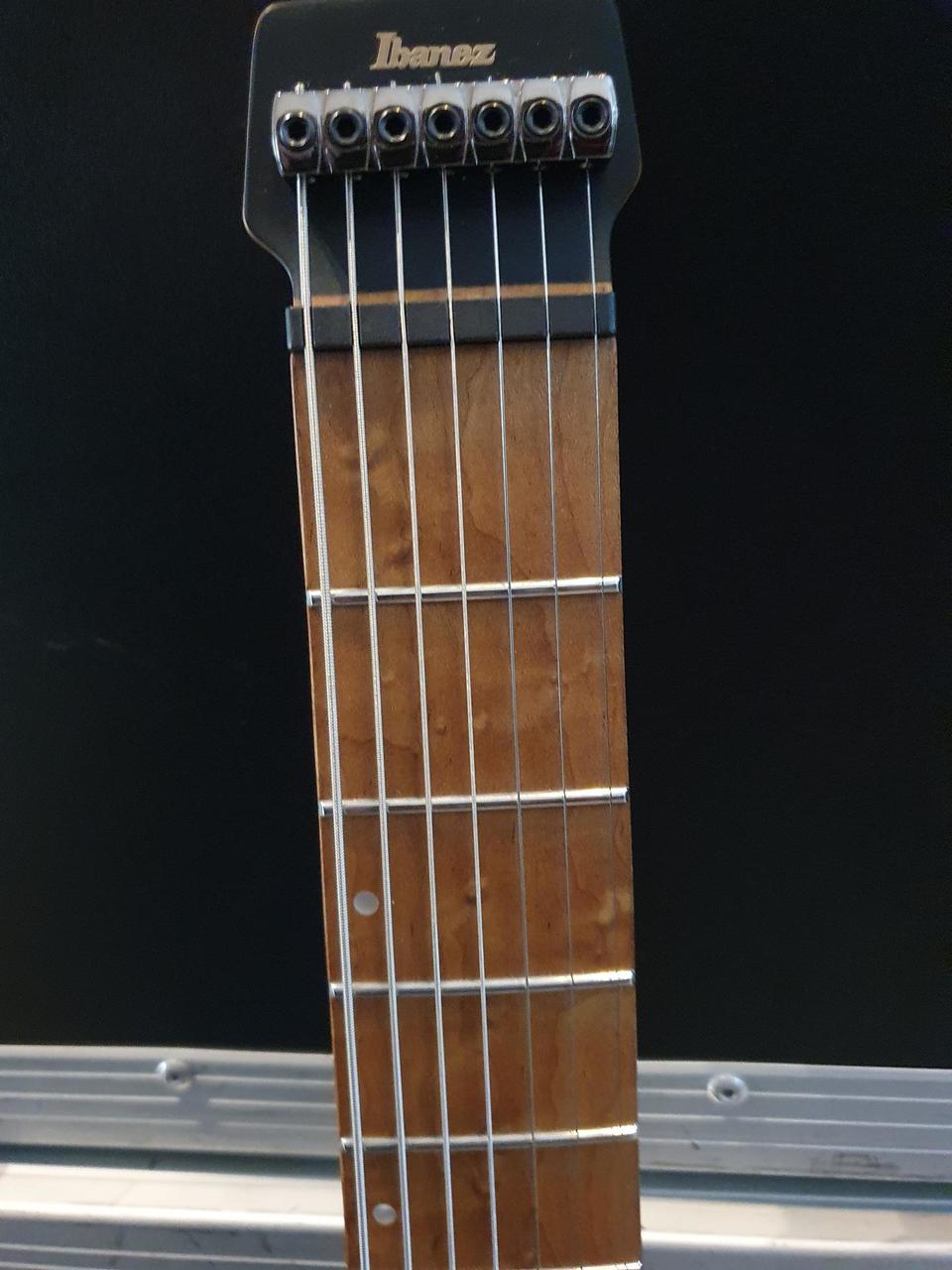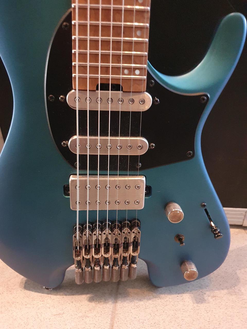 Tělo sedmistrunného modelu Q547-BMM je zhotovené ze dřeva nyatoh. Ke krku z pěti kusů tepelně upraveného (nebo chcete-li pečeného) javoru a exotického bubinga je přilepen hmatník z očkovaného javoru (rovněž tepelně upravený) osazený čtyřiadvaceti pražci Jescar EVO Gold. Orientaci na hmatníku usnadňují perleťové poziční a boční luminiscenční tečky. Kobylkový humbucker Q58 a dva single-coily R1 vyvinuté specificky pro potřeby bezhlavých (headless) kytar poskytují nástroji jasně definovaný zvuk vyvážený v celém frekvenčním spektru. Systém přepínání snímačů dyna-MIX 9 (pětipolohový blade switch a dvoupolohový alter swich) nabízí devět různých možností zapojení snímačů včetně rozdělení cívek humbuckeru nebo sériového zapojení single-coilů. Struny jsou ukotveny v jednodílné mechanice String Lock zaručující snadnou a rychlou výměnu strun a samostatných kobylkách Mono-Tune. Kytara je dodávána v obalu (gig bag). Funkce • Ovládání 1x Volume, 1x Tone, 1x Alter switch • Přepínač snímačů 5polohový Vlastnosti • Barva výrobce Blue Chameleon Metallic Matte (modra mat) • Typ kytary Headless • Profil krku Wizard C • Menzura 648 mm • Rádius 15,75 " • Počet pražců 24 • Šířka nultého pražce 47 mm • Konfigurace snímačů H-S-S • Model snímačů 1x Q58-7 Humbucker, 2x R1-7 Single-coil • Kobylka Pevná • Ladicí mechaniky Ibanez String Lock • Hardware Černý • Struny D'Addario XL110-7 • Tělo Nyatoh • Top Neobsahuje • Krk Jav