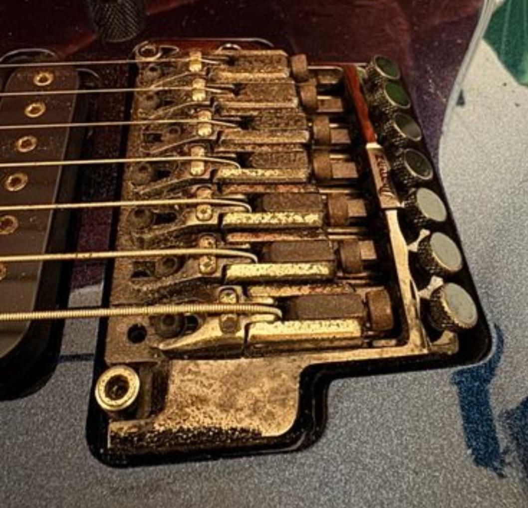 Místy je vidět věk kytary - odloupaný lak na vnitřních hranách a oxidace tremola. Osazeno snímači DiMarzio DP 700 a 702. Uvedená cena bez kufru