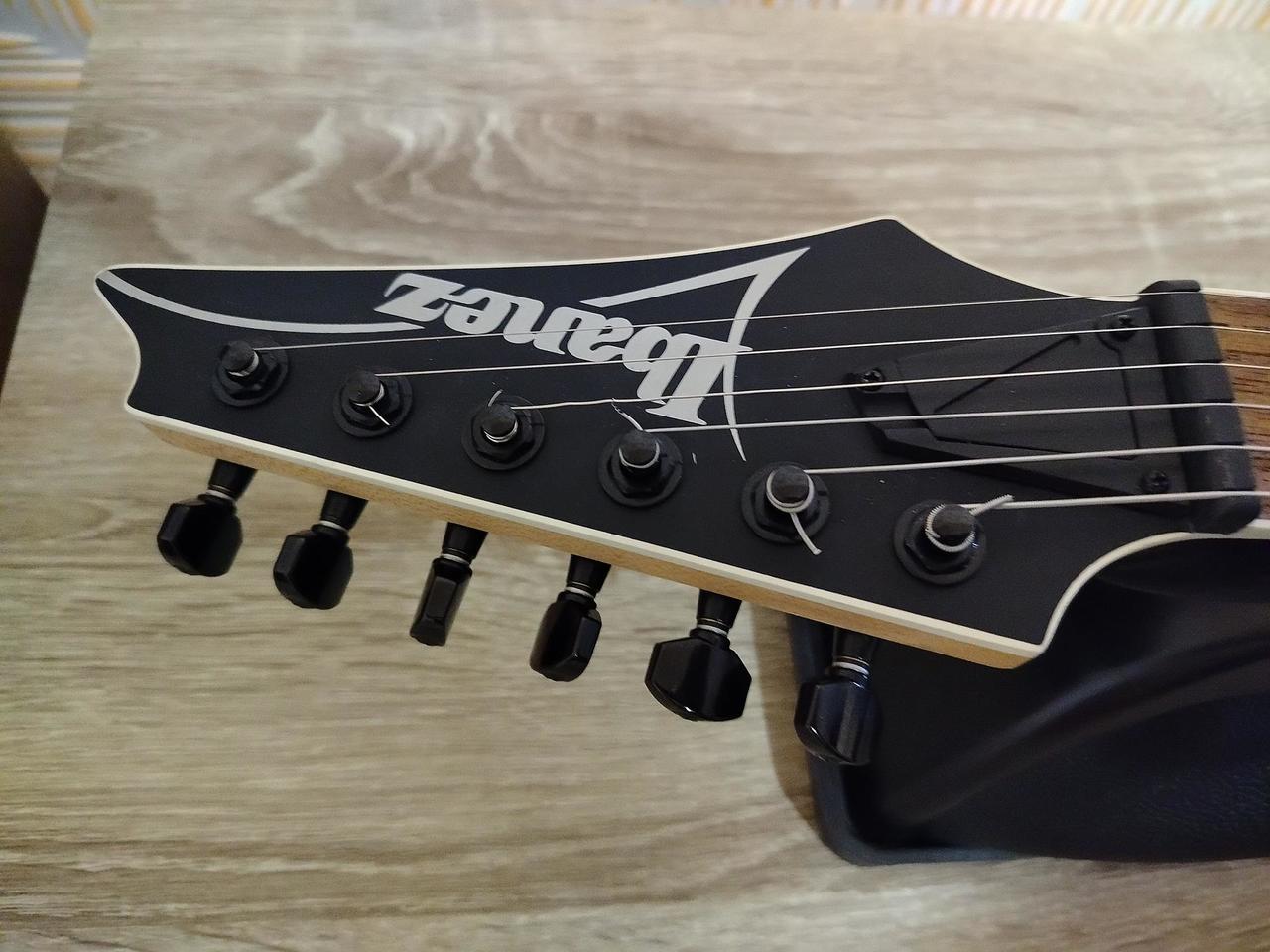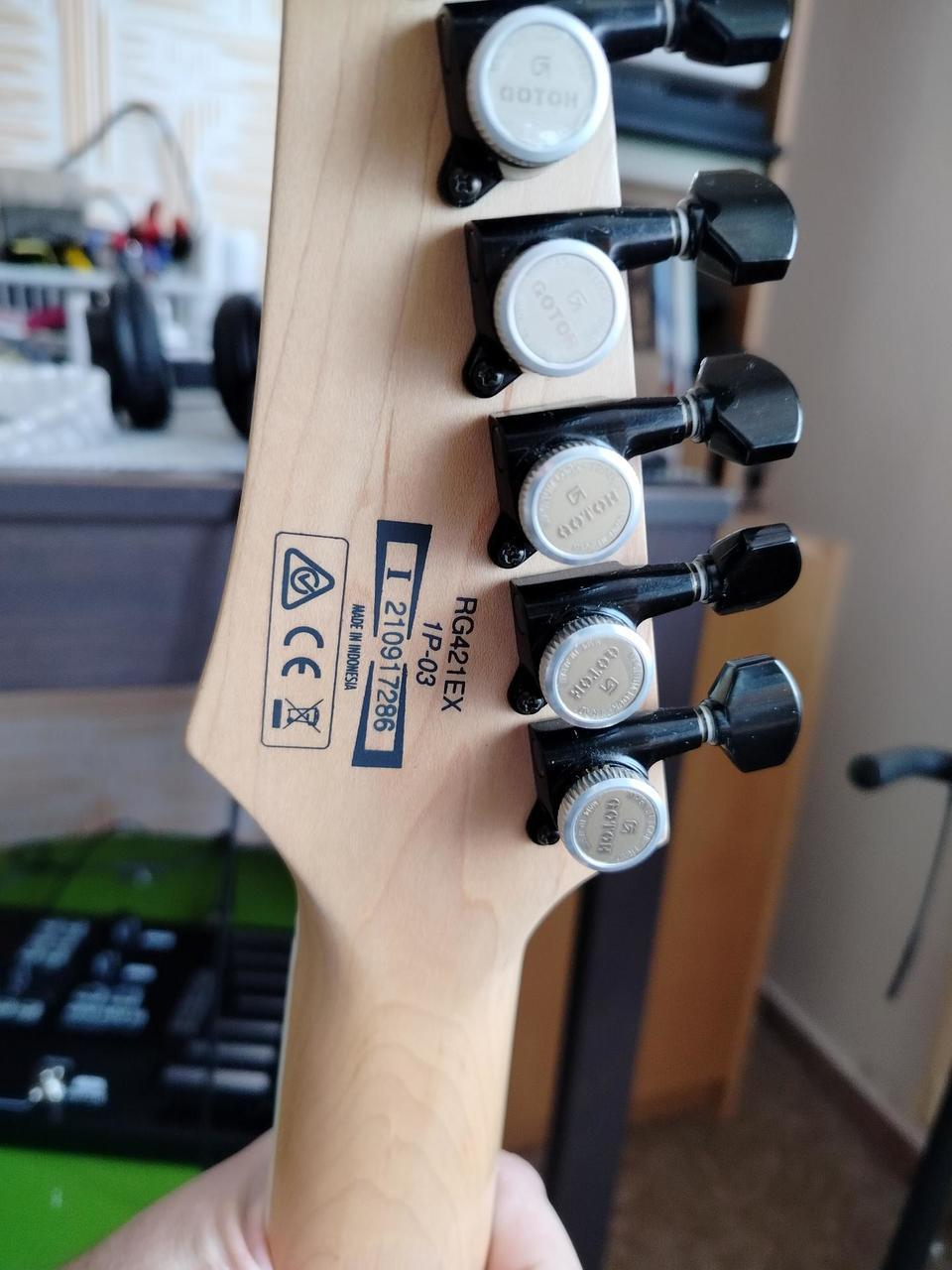 Prodám el.kytaru Ibanez řady RG, černý mat s bílým bindingem, informací o těchto kytarách je plný internet i YouTube, takže úpravy - snímače vyměněny za aktivní EMG FAT55 kompletní elekronika EMG včetně přepínače EMG T3, ladící mechaniky zamykací Gotoh Magnum,kobylka Gotoh fix bridge 6LX, nástroj ve velmi dobrém stavu,bez kosmetiky,super zvuk i ladění.pouze osobní odběr.