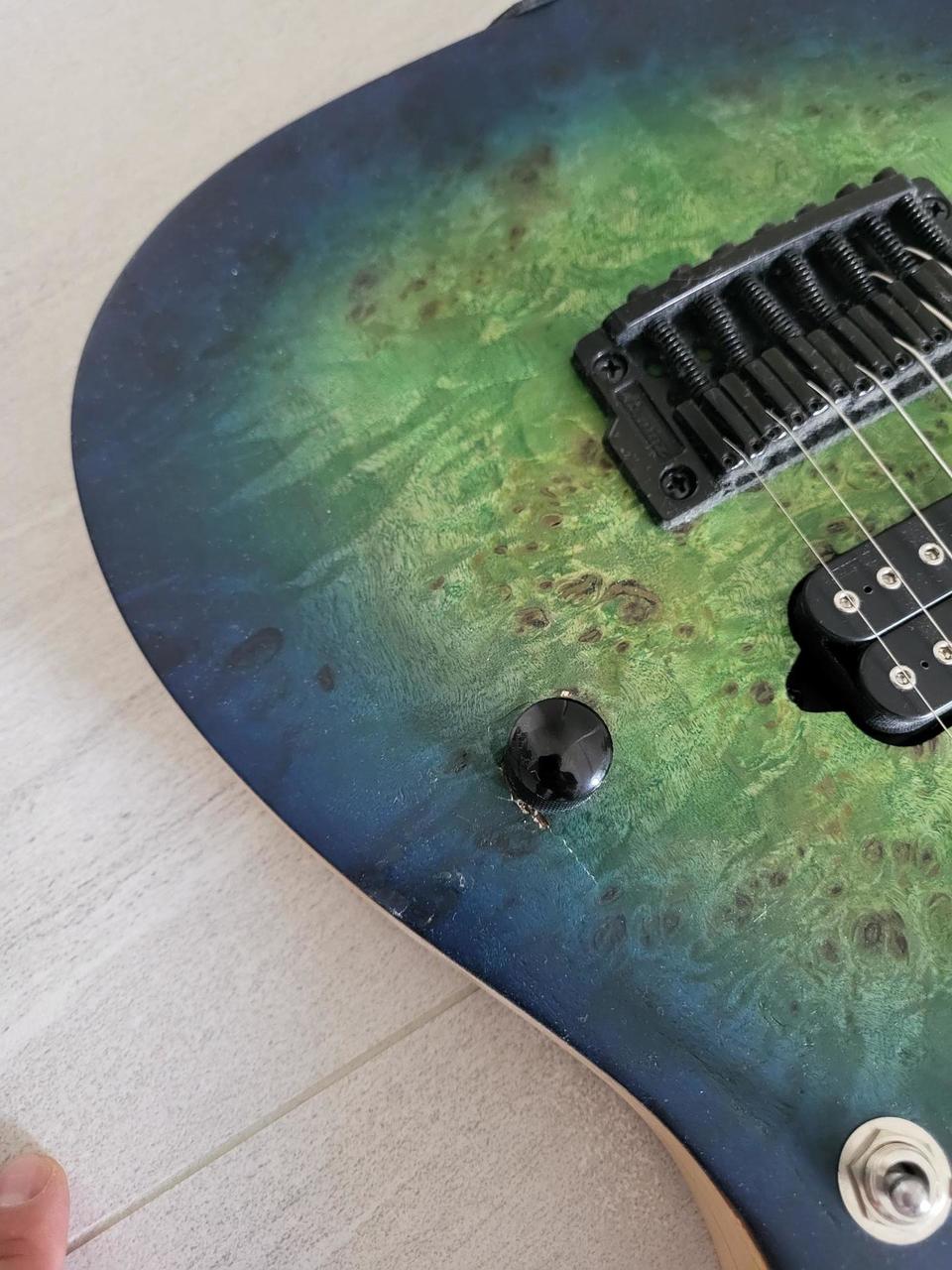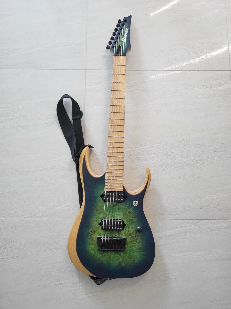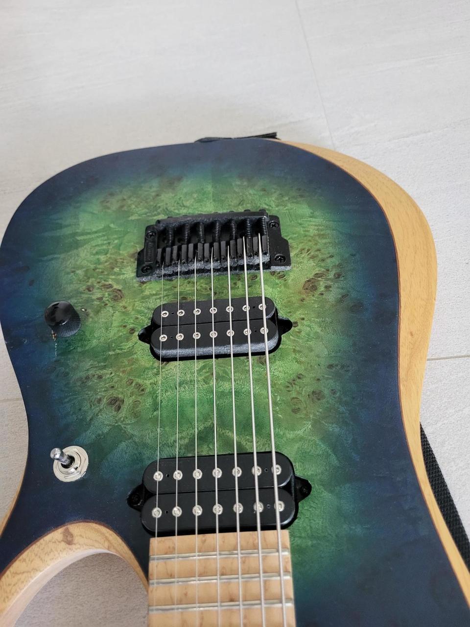 Prodám tuto nádhernou 7 strunnou kytaru. Lehké poškození okolo potenciometru, jinak téměř bez známek použití.