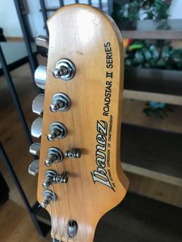 Prodám Ibanez Roadstar II. Japonská verze stratocasteru s pozměněným tělem bez pickguardu a dvěma humbuckery. Rok výroby 1984. Původní mechaniky a zámky na popruh. Snímače na ostřejší hudbu. Punk/ Metal. Černý zachovalý lak. Super zvuk. Měkký futrál v ceně.