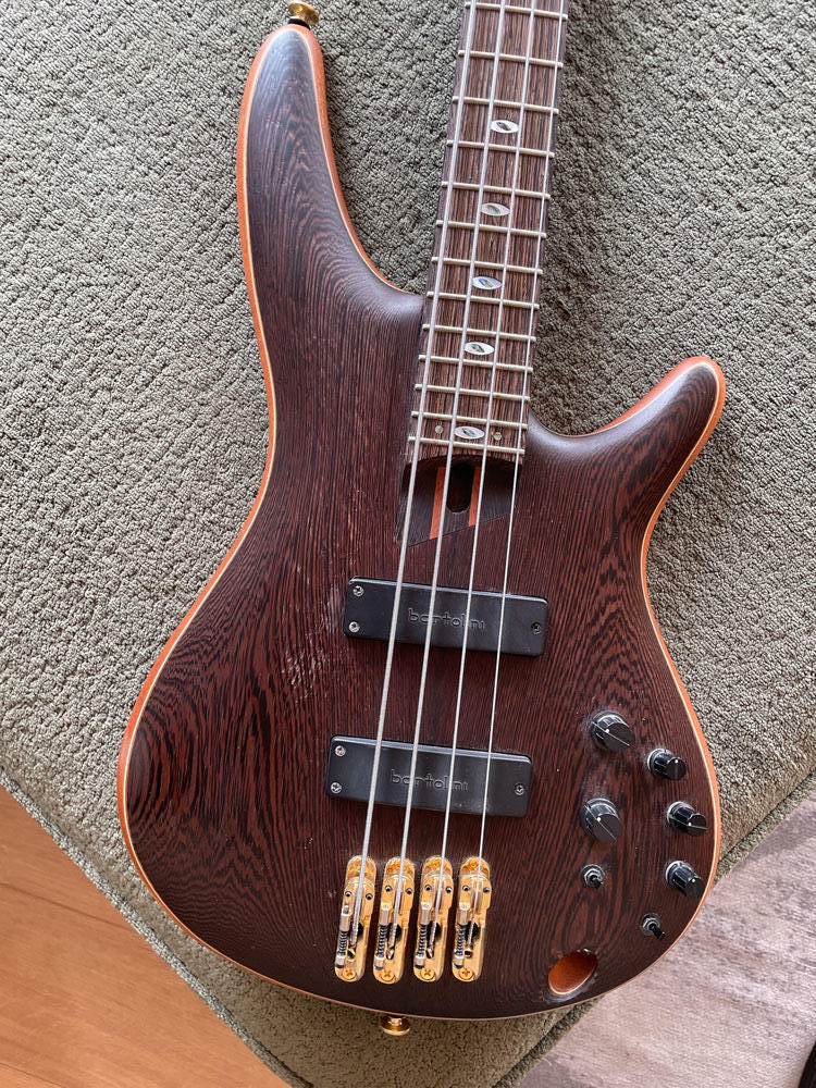 • Telo: Mahagón, vrchná a spodná doska z dreva Wenge • Krk: Atlas-4 HP 5pc Wenge/Bubinga • Hmatník: Wenge, 12'' • 24 Medium Pražcov • Nultý pražec: 38 mm • Menzúra: 864 mm • Snímače: 2x Bartolini® Custom • Ovládanie: Ibanez Custom Electronics 3-pásmový EQ, 3-pásmový mid freq. selector, Master Volume, Balancer, EQ bypass, Passive tone control • Kobylka: Mono-rail V bridge s 19mm odstupom strún • Pozlátený hardware • Prevedenie: Oil • Pevné púzdro v balení