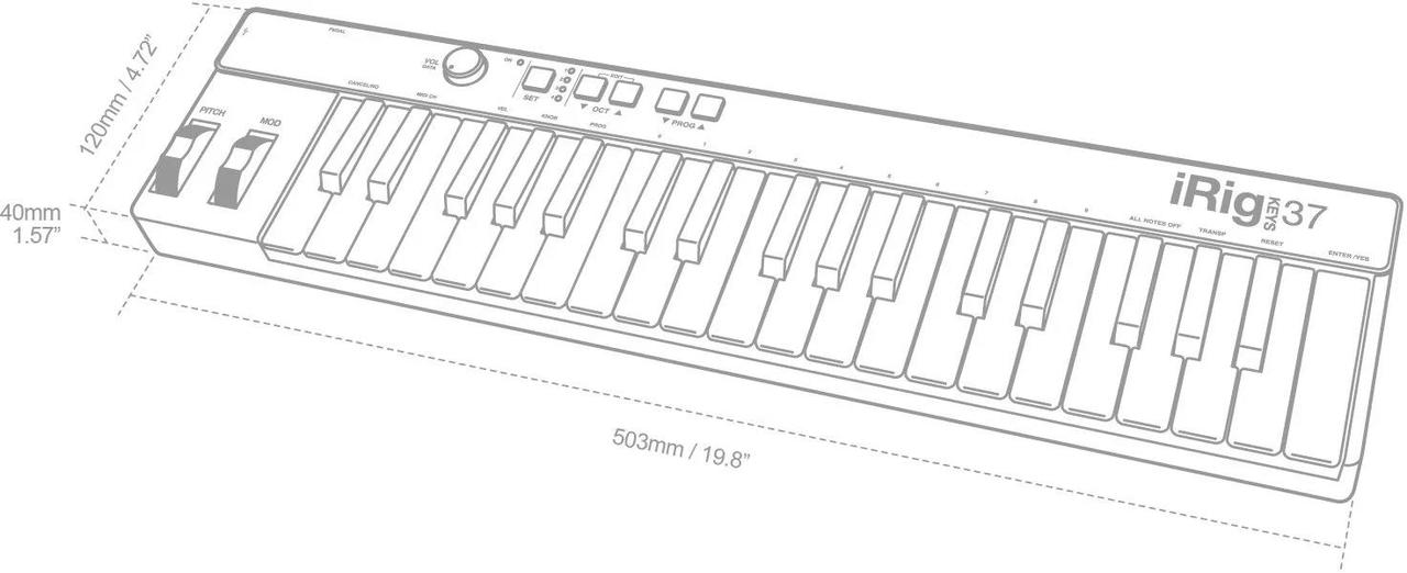 Prodám kompaktní MIDI klaviaturu IK Multimedia iRig Keys 37. Ideální pro produkci na cestách, práci s notebookem, iPadem nebo iPhonem. * 37 mini kláves (citlivé na dynamiku) * USB MIDI + kompatibilita s iOS zařízeními * Pitch bend + modulace * Octave / program tlačítka * Velmi lehká a přenosná * plně funkční * stav nového kusu, original balení.