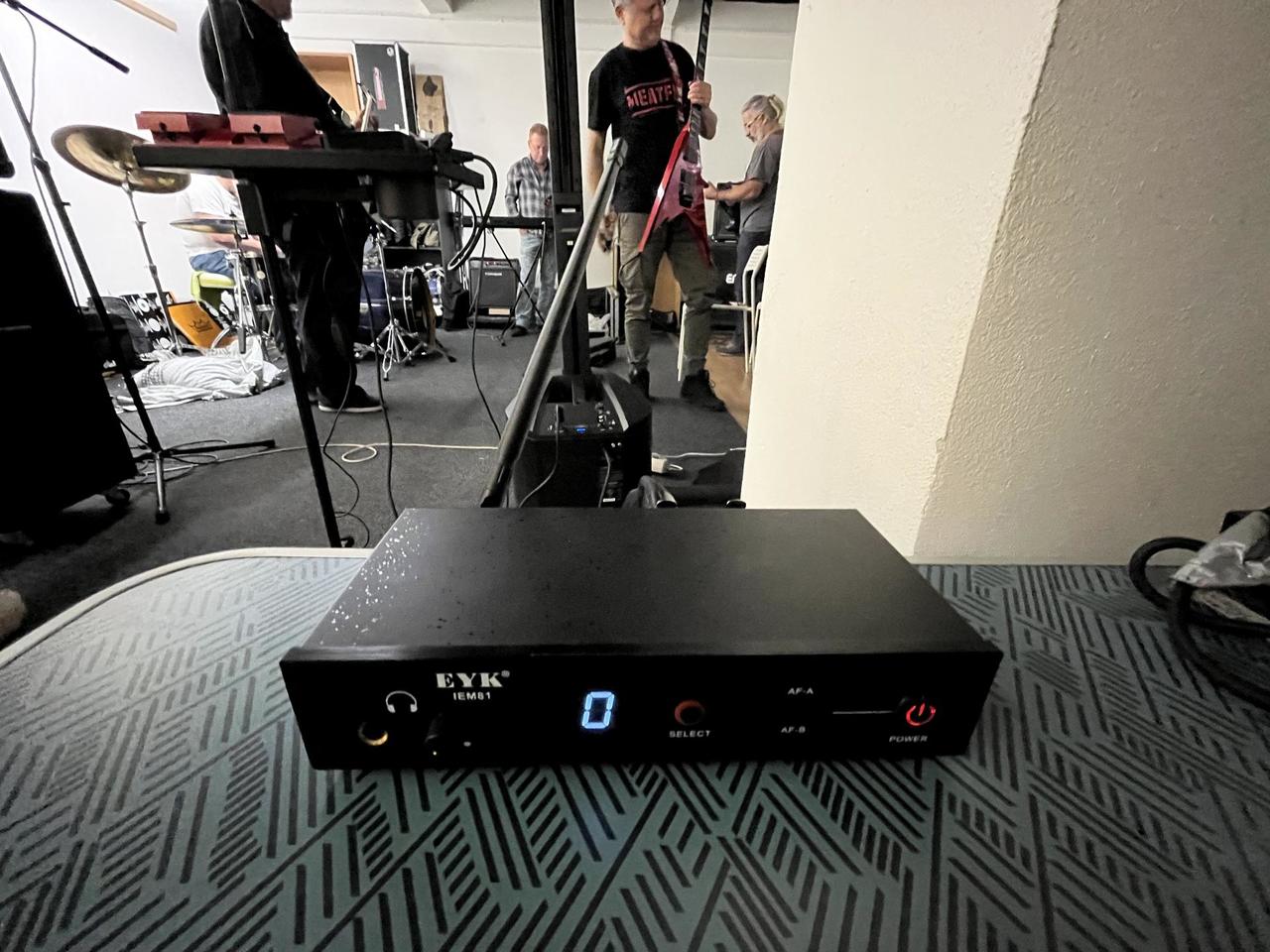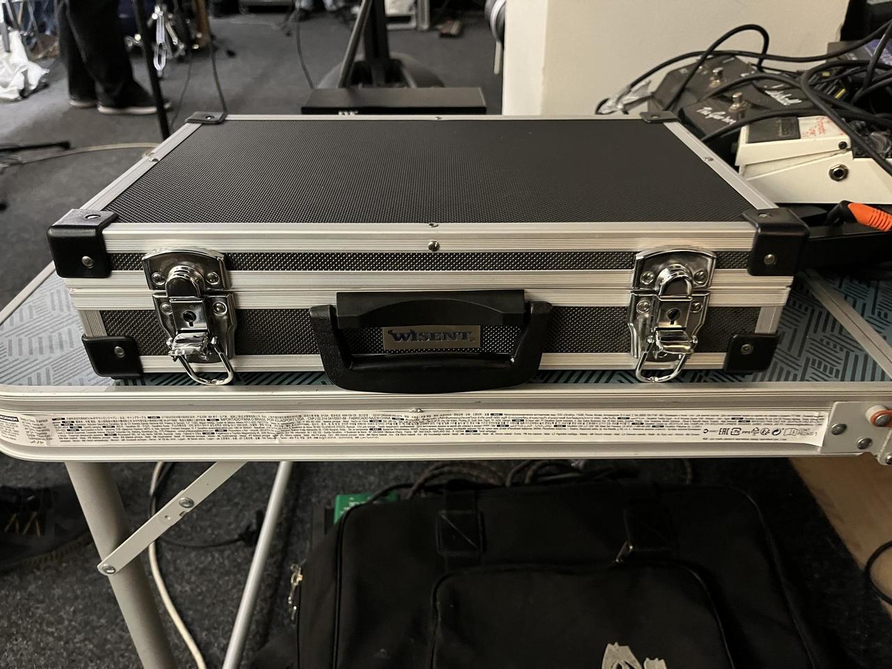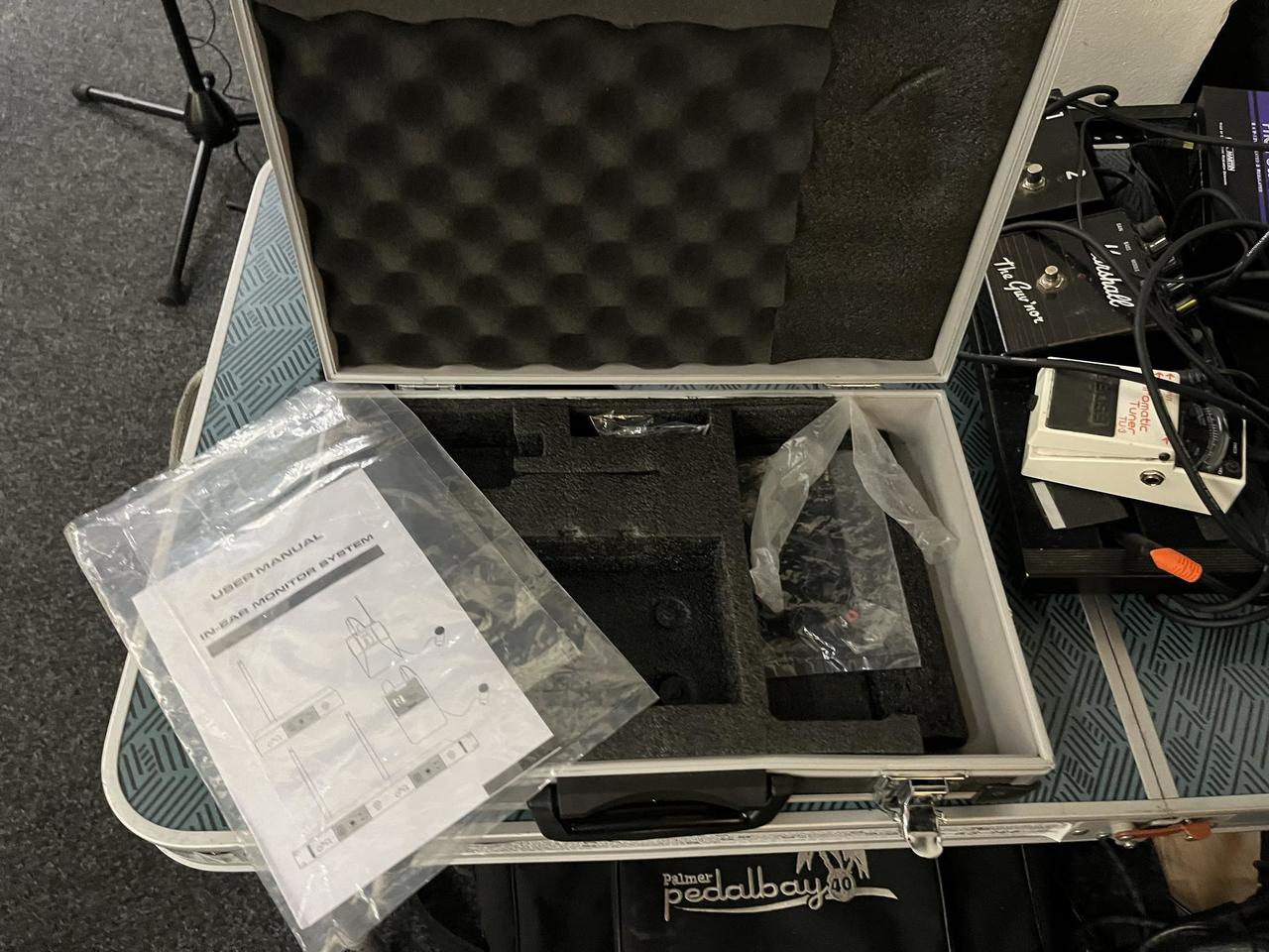 -vysílač -přijímač -adaptér 12 V 600 mA -sluchátka (original) -sluchátka (STAGG 435) - improvizovaný uzamykatelný kufřík WISENT (Bauhaus) -manuál Range: 500 - 580 MHZ Kanály: 16 Zvuk: Mono Dosah až 50 m bez překážek - tedy spíš na menší stage nebo zkušebnu - Mám to vyzkoušené spíš z klubů, ale fungoval bez problému i open air na 30 m s lidmi mezi vysílačem a přijímačem