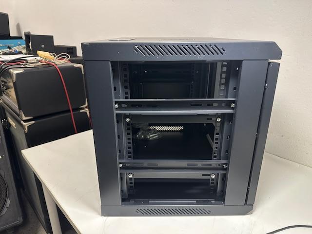 Nepoužitý kovový rack 9HU pro pevné instalace 19" přístrojů.