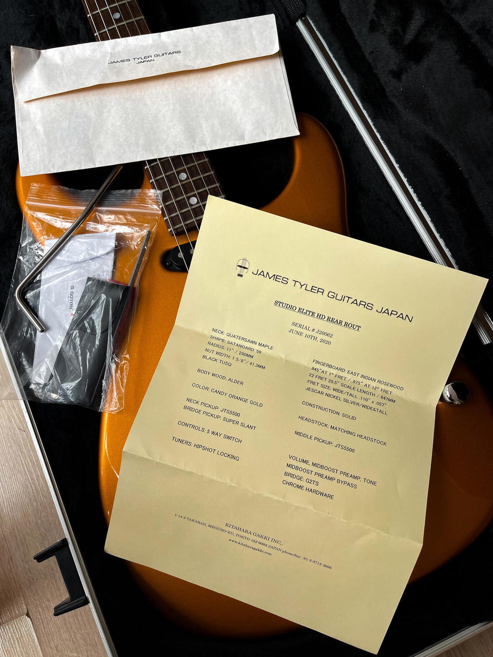 Prodám tento unikátní James Tyler Elite HD rear rout vyrobený v Japonsku v roce 2002, barva Candy Orange Gold. Zpracováním a zvukem nad úrovní Fender CS nebo Suhr. Tělo z olše, krk quartersawn javor, indický palisandr na hmatníku, HSS konfigurace s fantastickým midboost preampem. Kompletní specifikace v předposlední fotce. Skvělý zvuk i stav, seřízená, kufr, páka, case candy, certifikát. Neměním! Více info ve zprávě
