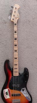 Prodám baskytaru v zachovalém stavu. Hlava přelepená nálepkou fender, krk neznámý, tělo squire. Pasivní snímače.