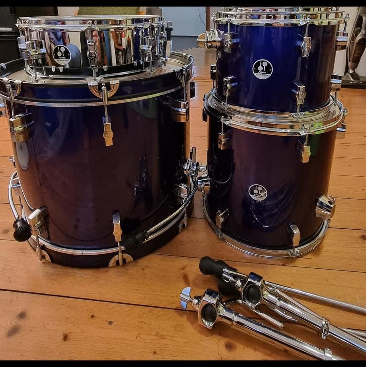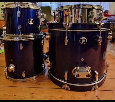 Krasna sada 20, 12, 14 floor a kovovy snare 14. Modrá barva, dva holdery do kopaku. Super stav i zvuk. V cene bici, snare, nohy k floor tomu, holder.