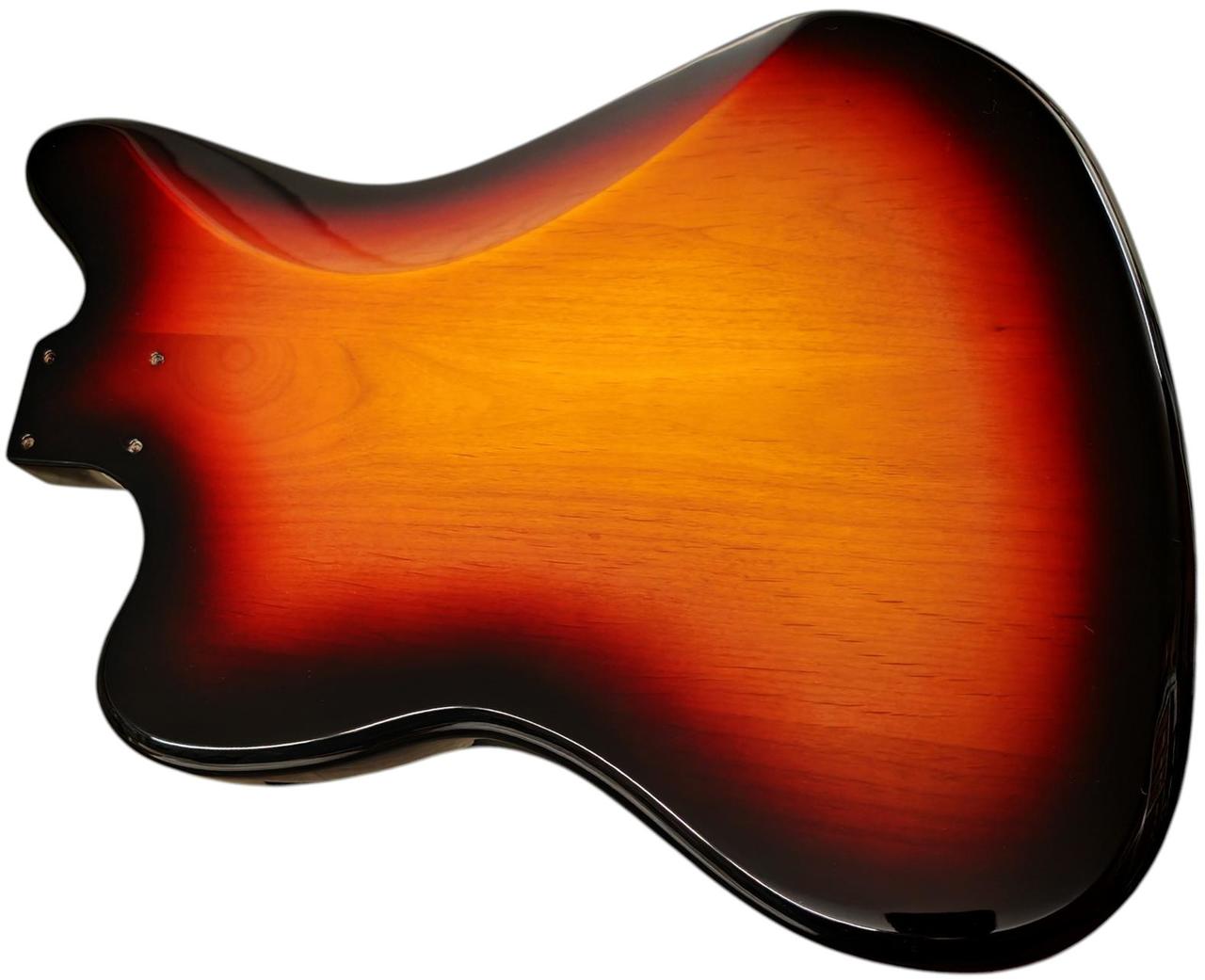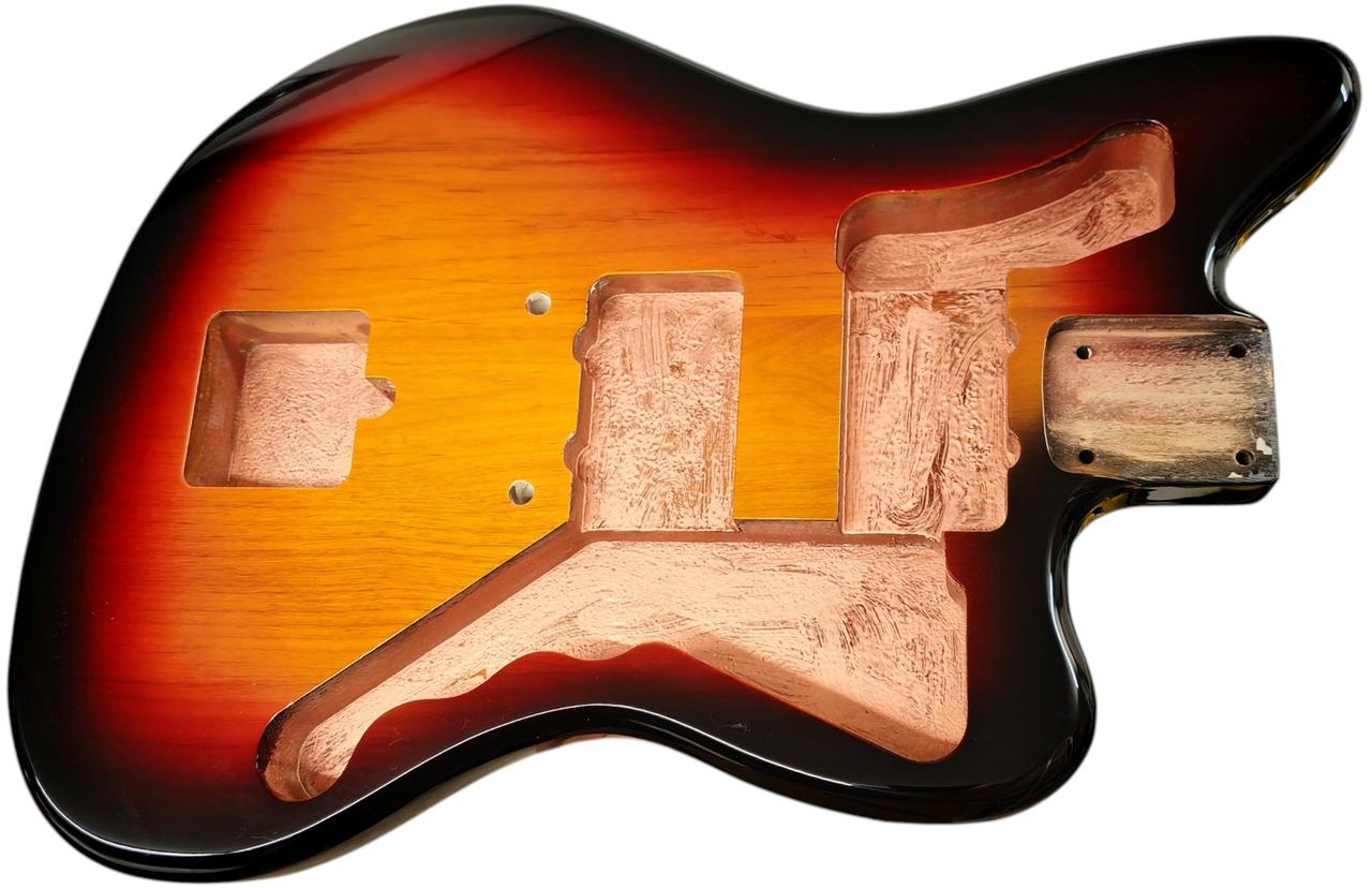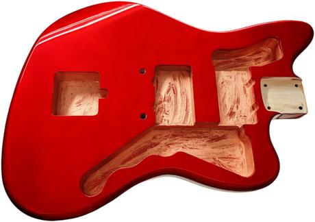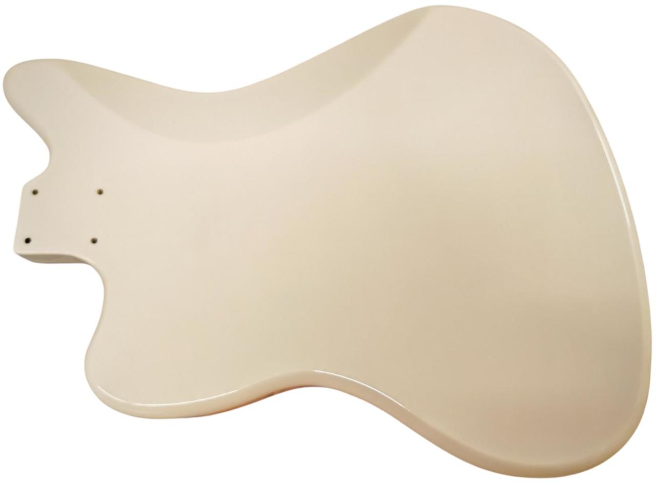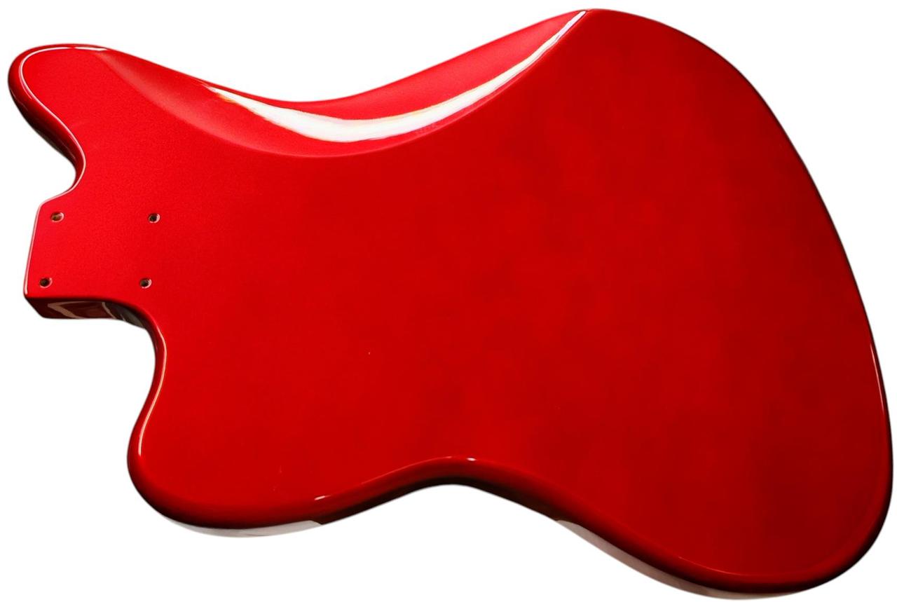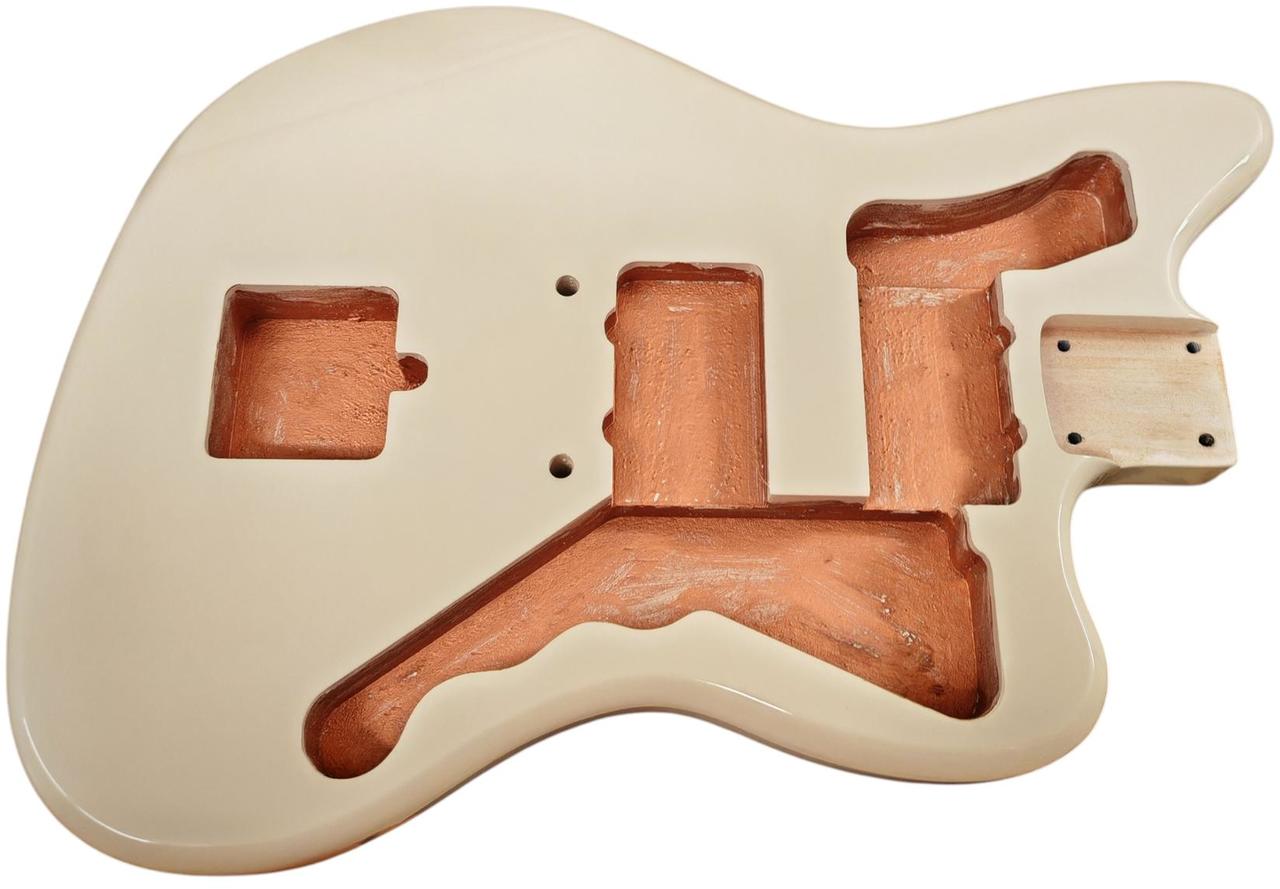Telo je vyrobené z prémiového jelšového dreva, s hmotnosťou približne 2,2 – 2,3 kg, čo je pomerne ľahké na tento tvar. Hrúbka je približne 46 mm. Frézovanie umožňuje pôvodné zapojenie a P90 snímače, ale dá sa použiť aj univerzálne. Otvory pre kolíky kobilky sú predvŕtané s pôvodnou roztečou 73 mm (stred – stred). Výrez pre tradičné Jazzmaster / Jaguar tremolo. Kapsa pre Krk je typická pre Fender – šírka 56 mm, dĺžka 77 mm a je plytšia než pri Stratocasteri alebo Telecasteri, typická pre vintage Jazzmaster – 14 mm, čo umožňuje dostatočný priestor pre snímače P90. Otvory sú ošetrené medenou farbou. Dostupné farby ako na foto. Cena je uvedená za jedno telo gitary. Máme aj krky s veľkou hlavou.