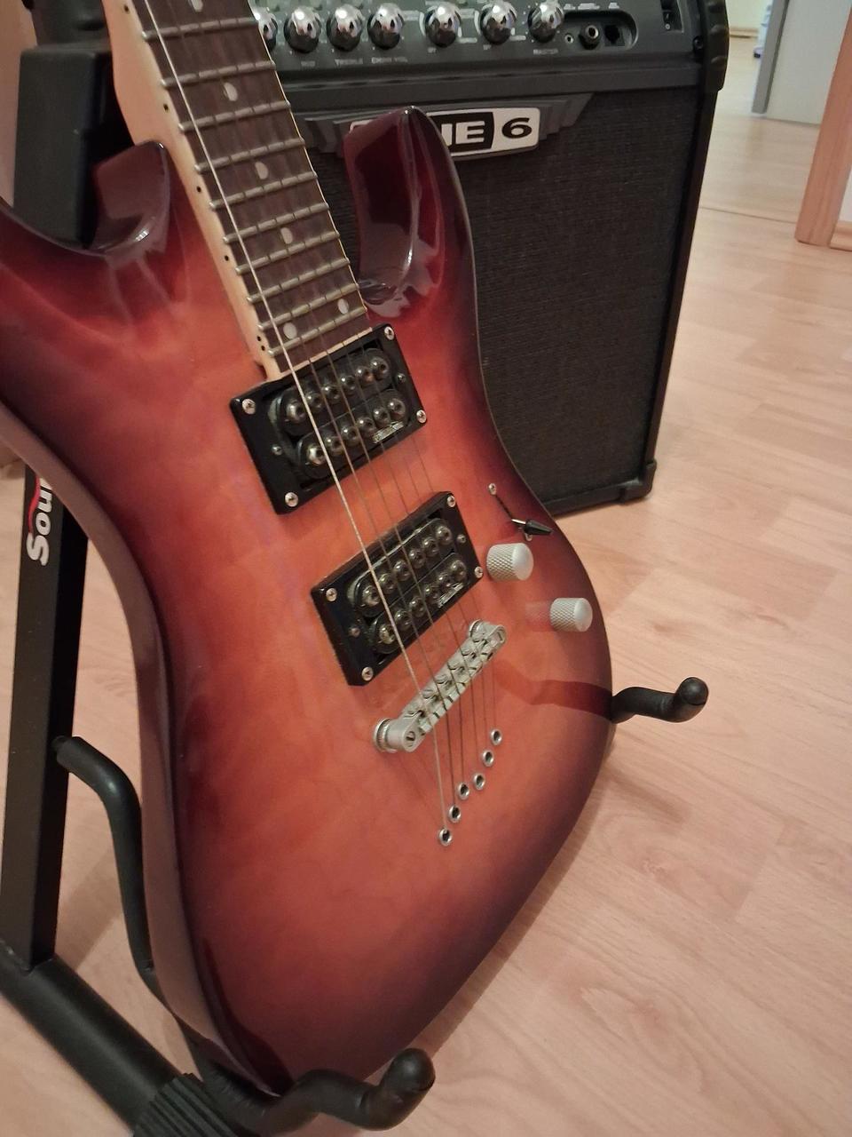 Nabízím set elektrické kytary s kombem. Vše plně funkční. Kytara mě doprovázela léta na koncertech, takže mírné známky používání, ale nic strašného. Parametry komba zde: