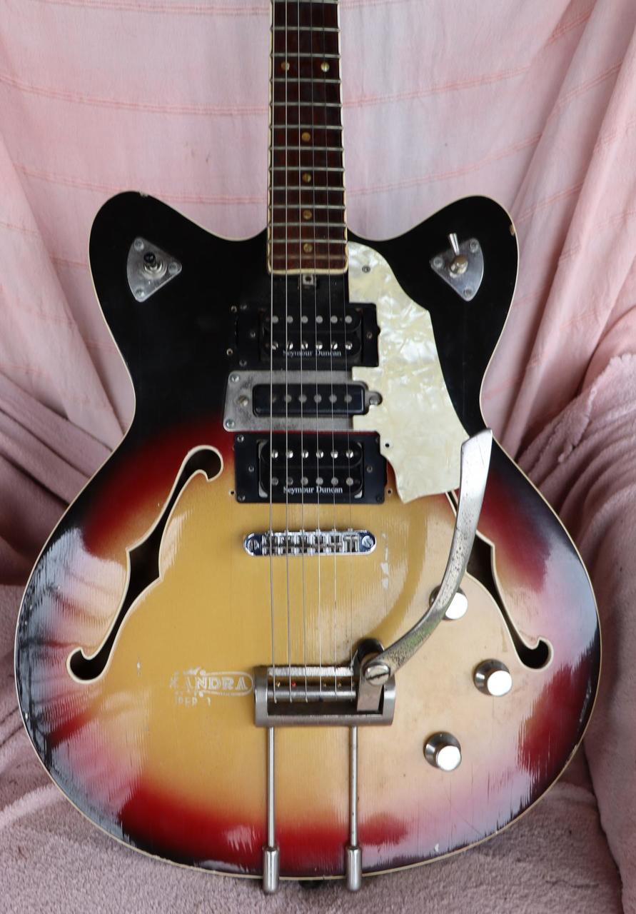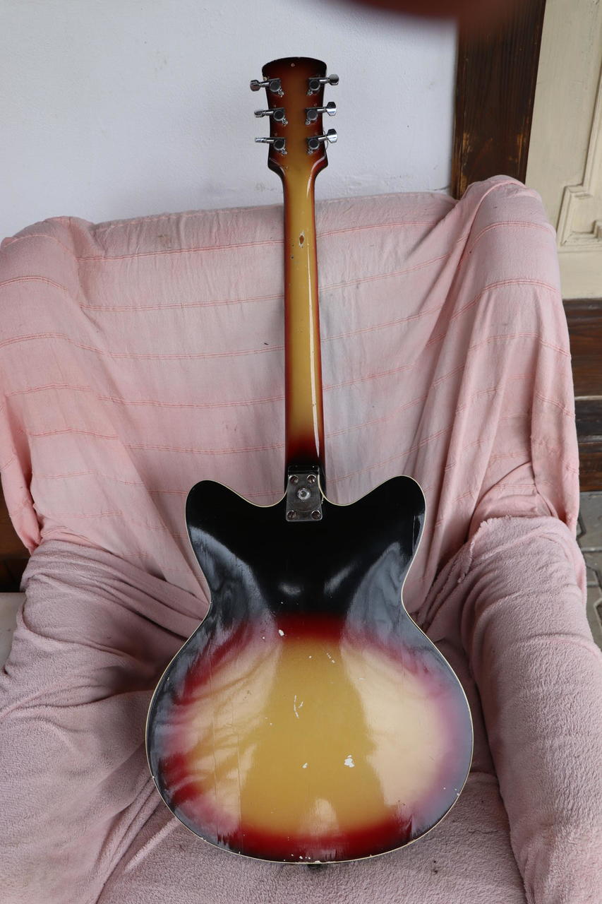 Další z mé sbírky je Jolana Alexandra z roku 1970. V té době stála 2750,-Kč. což byly dva měsíční platy. Osazena snímači Seymour Duncan. Púvodní snímače a mechaniky jsou k dispozici. Hraje výborně.