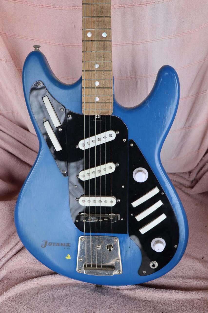 Další z mé sbírky je Jolana Alfa, rok 1967. Osazena snímači Fender. Přepínače původní ( asi by chtěly pročistit ). Původní snímače k dispozici. Ladění a zvuk perfektní.