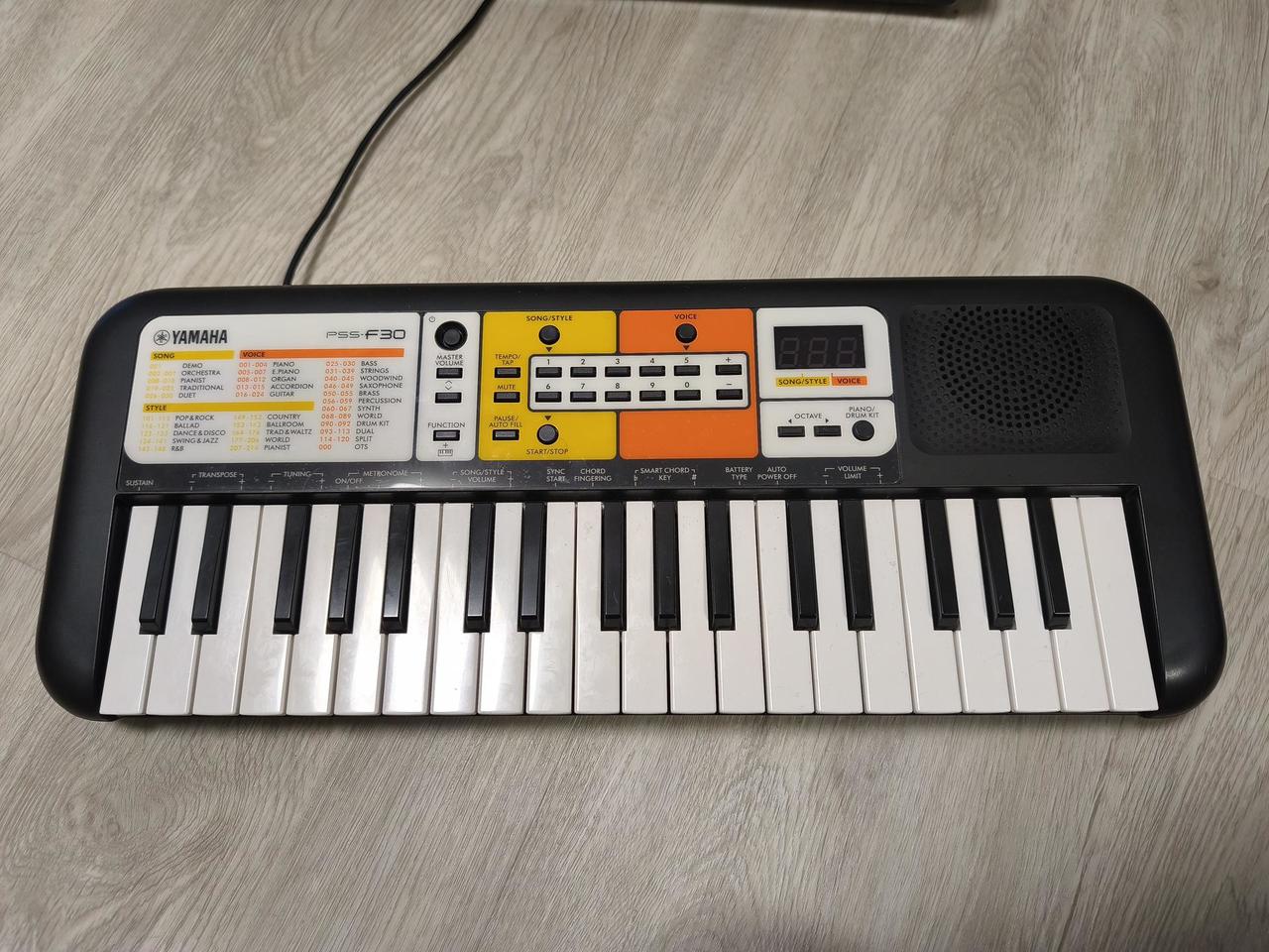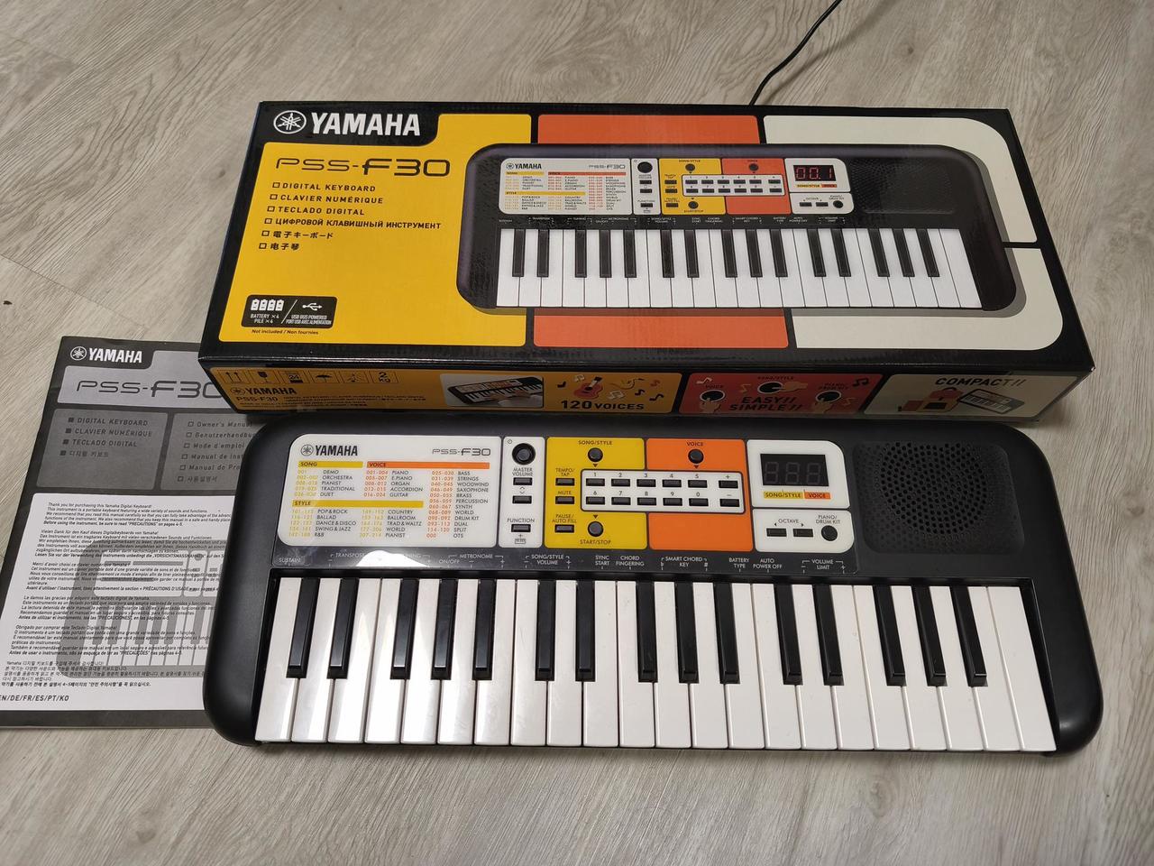 Prodám skvělý přenosný keyboard Yamaha PSS-F30. 37 mini kláves, 120 zvuků, 3 bicí sady, 114 vestavěných automatických doprovodů a 30 přednastavených skladeb. Polyfonie, sustain, transpozice, ladění, ovládání hlasitosti zvlášť pro doprovod a melodie, hraní doprovodu pomocí akordů nebo jedním prstem. Napájení na 4 tužkové baterie nebo přes USB kabel, návod. Cena 1290 Kč.