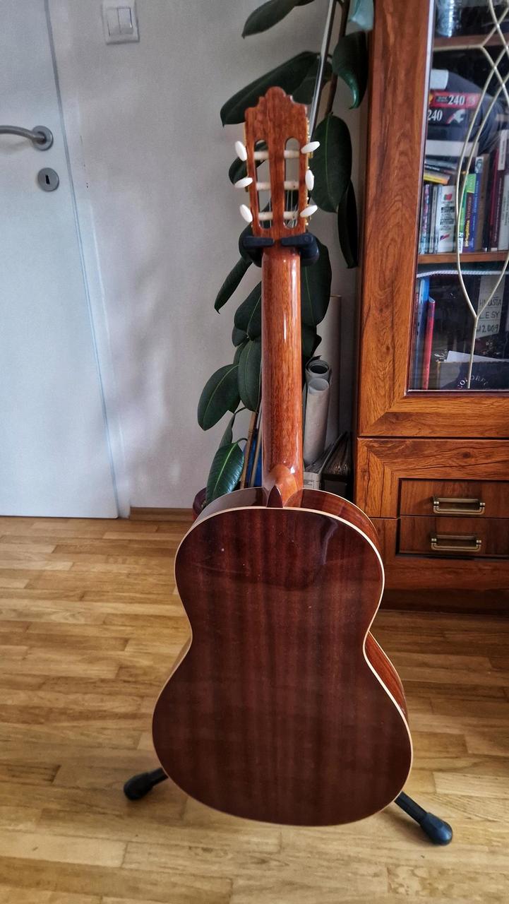 Predná doska je z masívneho cédrového dreva, zadná doska, luby a krk sú z mahagónu a hmatník z indického palisandra. Gitara je v podstate nová, málo hraná a vhodná pre kohokoľvek, od začiatočníka až po profesionála.
