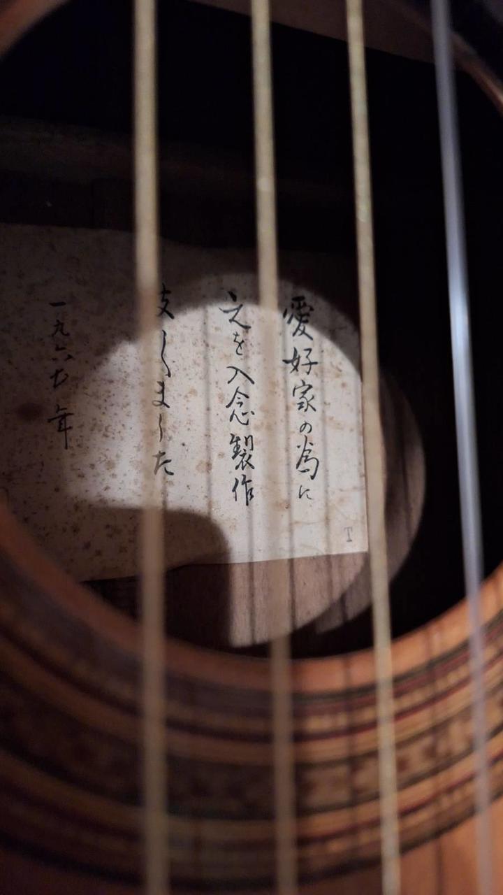 Text na "nálepke" hovorí: „Tento kus som vyrobil s maximálnou starostlivosťou, aby priniesol radosť pravým nadšencom hudby, rok 1965“ Je tam majstrovská pečiatka, ktorá potvrdzuje, že to osobne vyrobil S.Yairi. Úžasný ručne vyrobený nástroj v perfektnom stave. Veľmi "starý" vyvážený zvuk, jemná nádherne spracovaná gitara od jedneho z najlepších majstrov Japonska. Veľmi raritný kus so zberateľskou hodnotou ale zároveň úžasný nástroj. Možná výmena. Cena dohodou.
