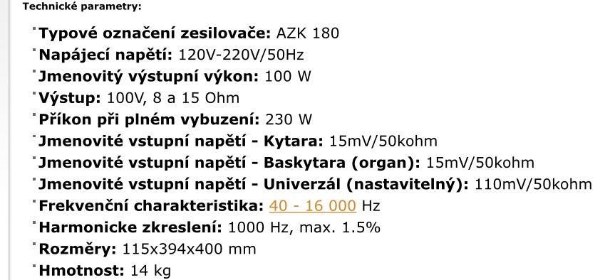 Parametry zesilovače jsou ve Foto. Cena 1800kč při vážném zájmu po domluvě sleva možná.