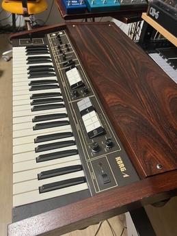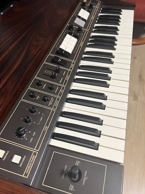 Nabízím Korg Lambda, charakteristický string syntezátor z r.1980. Komplet servis 2023, má nádherný zvuk – jeho specialita je 1) oddělená ensemble a percussive sekce 2) stereo chorus, co nešumí, krásně plave ve stereo poli, plná polyfonie a zajímavý jemný filtr. Když jsem ho uviděl, tak jsem ho musel koupit (kupován v Brightonu, UK), je to nástroj, co dělá silný dojem a je živý. K prohlédnutí, poslechu a osobnímu předání na Praze 5. V podstatě se ani nebráním výměně za něco podobně neobvyklého (synthy, studio gear do 19").
