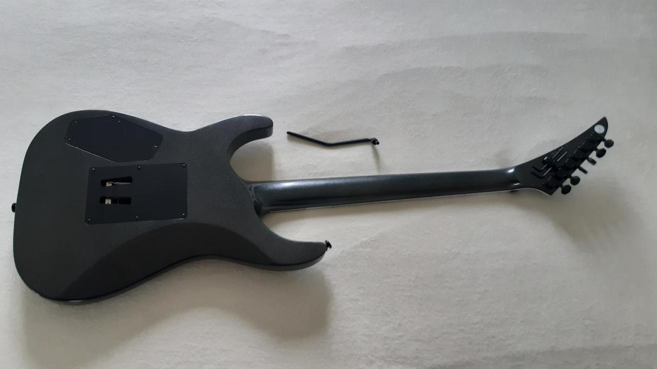 Specifikace: Tělo: Materiál těla: Mahagon Tvar těla: Double Cutaway Barva: Maximální ocel Krk a hmatník: Materiál krku: mahagon Finish krku: Satin Tvar krku: K-Speed SlimTaper "C" Materiál hmatníku: Ebony Poloměr hmatníku: 14 " Vložky hmatníku: motiv HS Počet pražců: 24 Velikost pražce: Střední Jumbo String Matice: Bloková matice Floyd Rose R2, horní držák Měřítko: 25,5 " Hardware a elektronika: Barva Hardware : černá Tuning stroje: Černý tlakový odlitek Most: Floyd Rose 1000 Series Tremolo Konfigurace vyzvednutí: HSS Bridge Pickup: Seymour Duncan JB Střední vyzvednutí: Seymour Duncan Cool Rails Vyzvednutí krku: Seymour Duncan Cool Rails Ovládání: Master Volume s rozdělovačem push-pull
