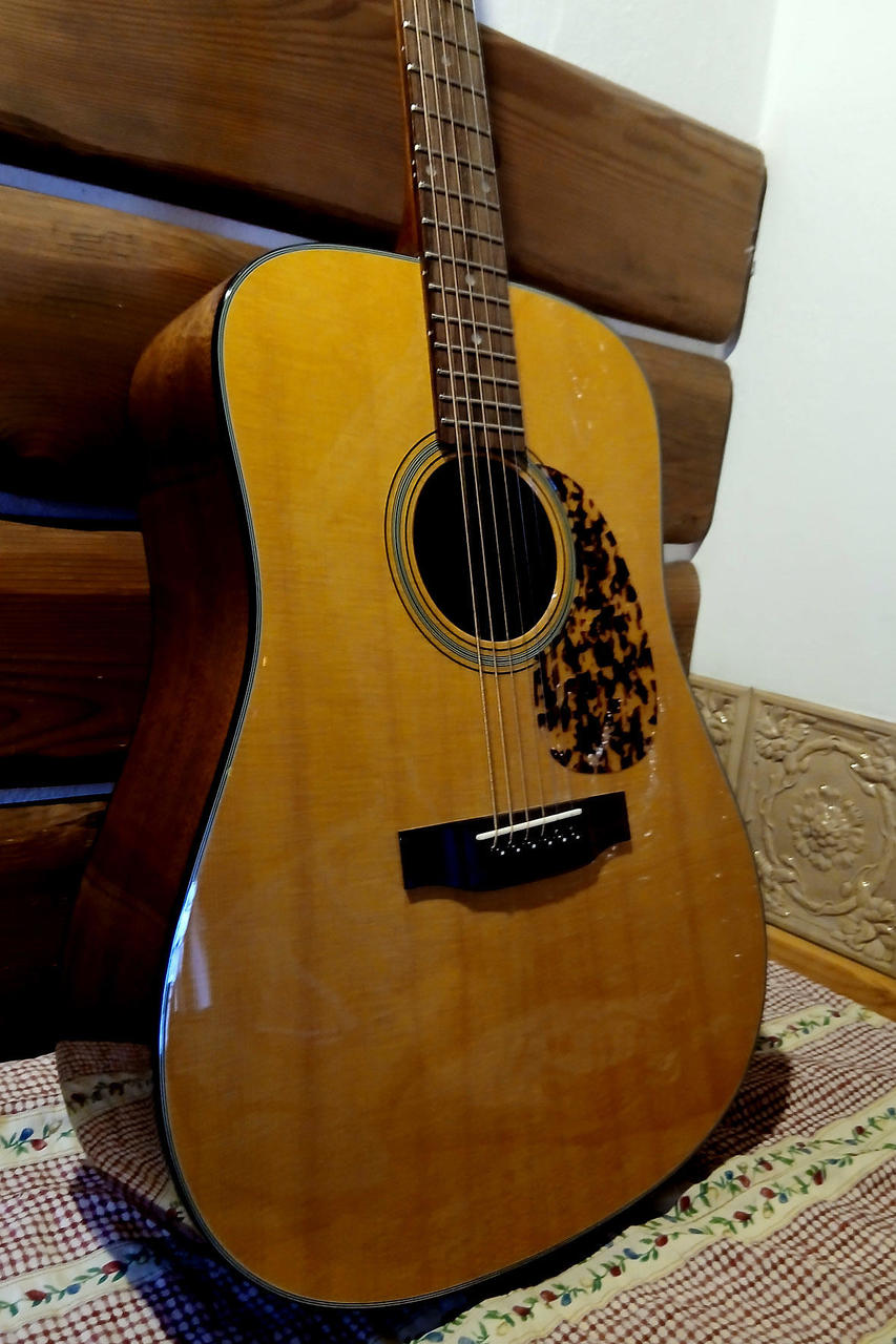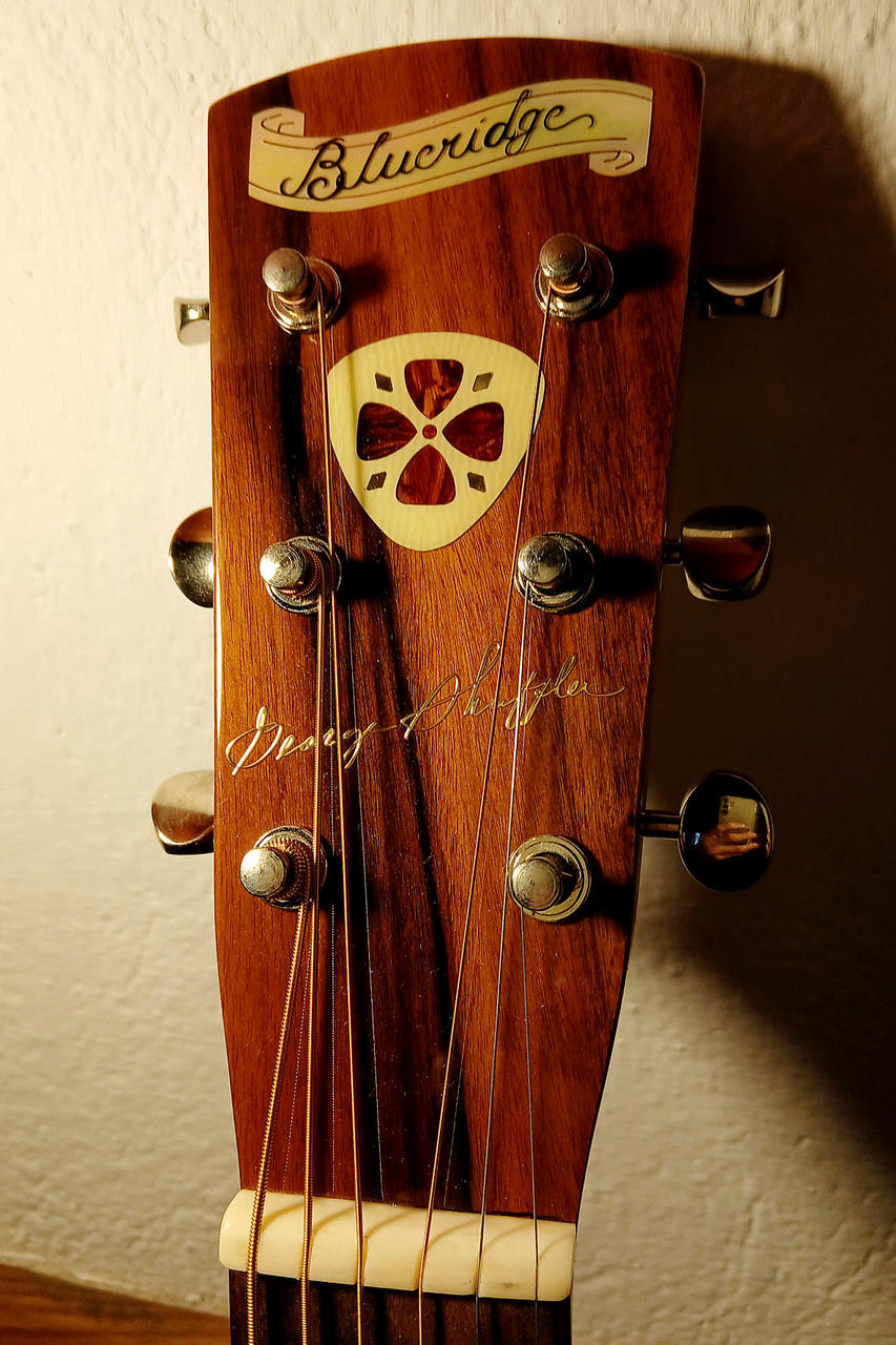 Naposled na trhu v roce 2014 (viz přiložený list z katalogu)! Kytara podepsaná legendárním propagátorem stylu „cross-picking“ Georgem Shufflerem, jehož styl zaznamenaný na klíčových nahrávkách od 50. let minulého století dal nové rozměry nejen bluegrassové kytaře. Kytara má silný a plný tón vynikající kvality bez nežádoucího přeznívání a zahlcování zvukového rejstříku. Výběrová smrková masivní vrchní deska, ručně vyřezávané žebrování v autentickém předválečném uspořádání, luby a zadní deska z mahagonu, mahagonový krk s rybinovým spojem a stavěcím šroubem, oblý palisandrový hmatník, tradiční hlava s ojedinělým „trsátkovým“ vykládáním a zlatým podpisem George Shufflera, poniklované mechaniky s fazolovými rondelemi, palisandrová kobylka.