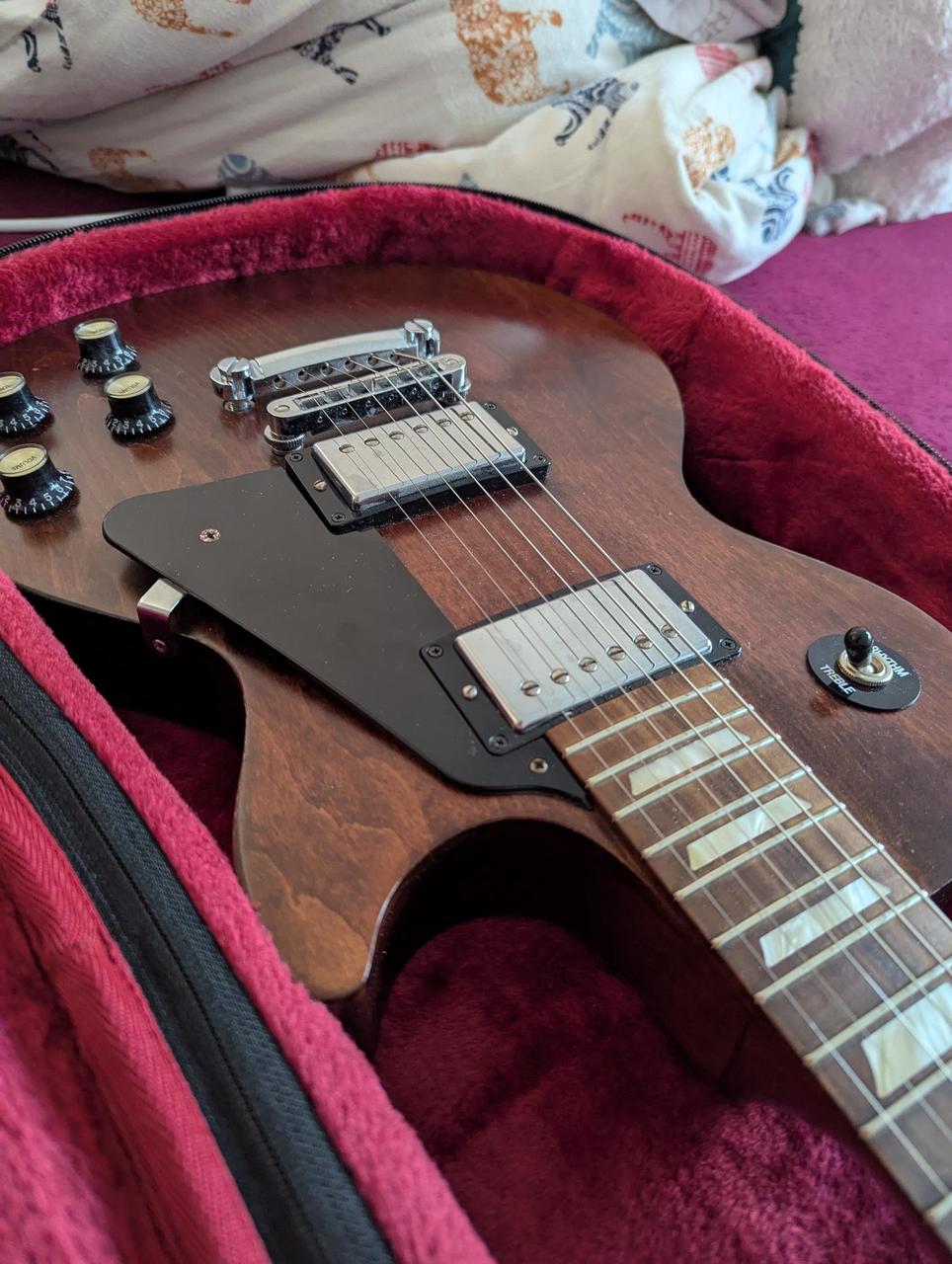 Prodám svoji krásnou kytaru Gibson Les Paul Studio včetně originálního obalu. Kytara má pár šrámů na kráse (fotky), ale to je jen estetické, hraje nádherně. Možnost vyzkoušet na vlastní aparátu. Pouze osobní odběr