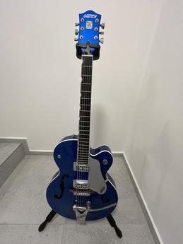 Nabízím k prodeji kytaru Gretsch model Briana Setzera zakoupenou v roce 2015. Přesně se jedná o model GRETSCH G6120SHBTV Brian Setzer Hot Rod Blue. Kytara hrána pouze ve studiu, skvělý stav. Bližší specifikace v AN. The Gretsch G6120SH Brian Setzer Guitar is a classic rock n roll machine ideal for 50s rockabilly and swing. It features TV Jones Brian Setzer Signature Filter'Tron Pickups for that genuine vintage sound. Other appointments include a two tone finish, Flame Maple body, Schaller Locking Tuners, 'Hot Rod' Logo on truss rod cover, an increased body depth of 2.75" and no pickguard. There's also a Setzer signature on the back of the headstock. Prosím o solidní zájemce, nemám zájem o výměnu a nebudu reagovat na nabídky ohledně přehnané snížení ceny. Děkuji.