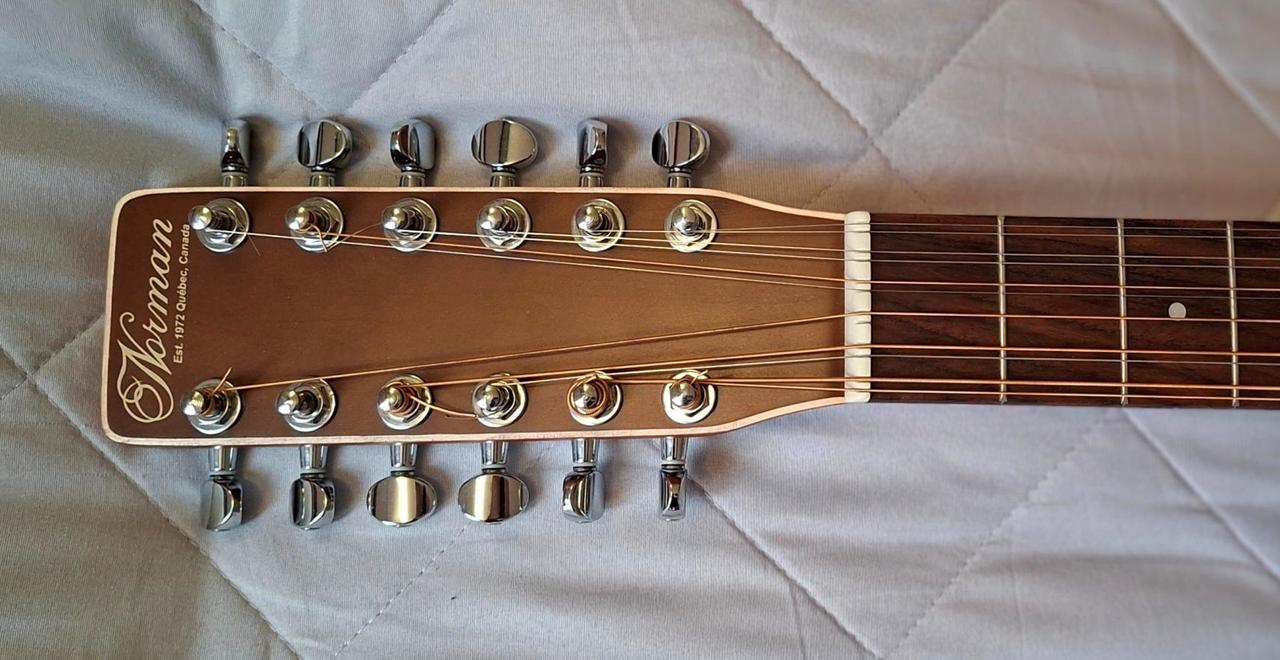 Zboží bylo koupeno na Kytary.cz pro manželku, ale ta "neumačká" struny. Podrobné info o kytaře najdete zde: https://kytary.cz/norman-encore-b20-12-presys/HN111158/?source=Unknown Původní cena kompletu 20 100,- Kč, prodejní cena 12 000,- Kč