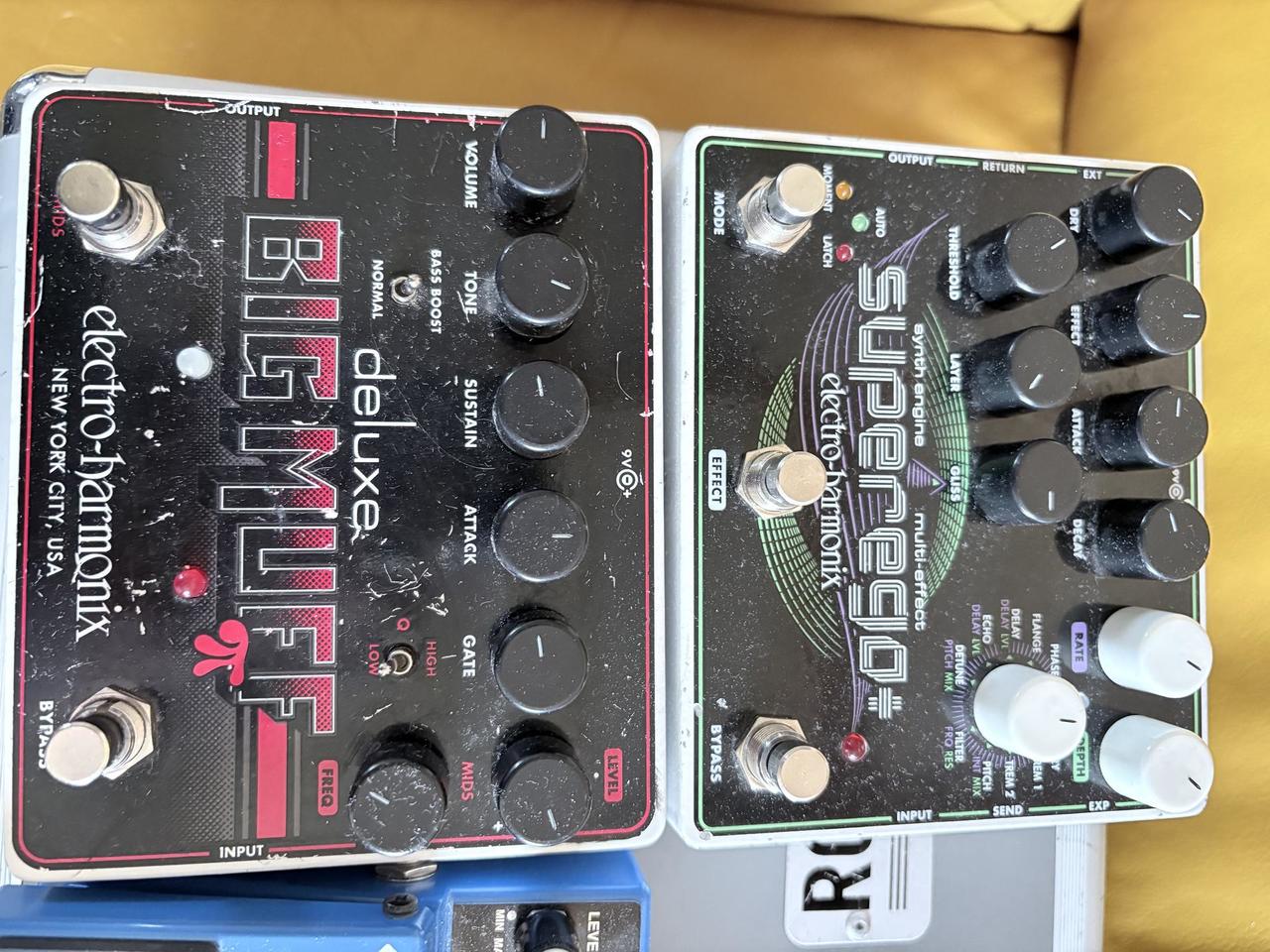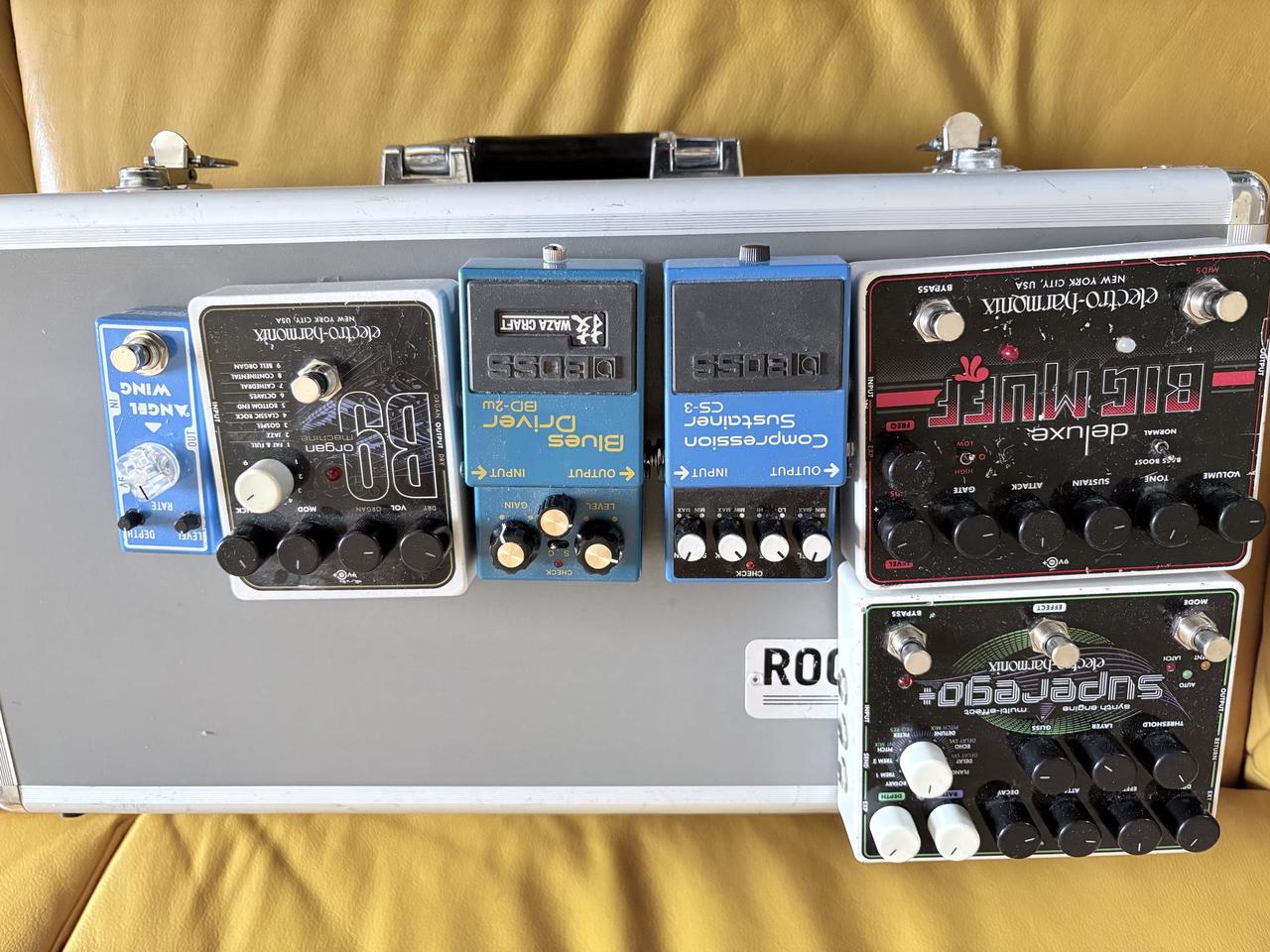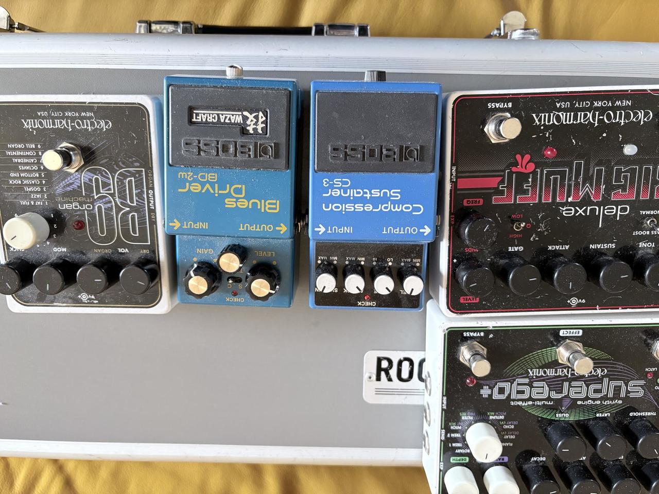 Z důvodu zakoupení kytarového multi efektu prodávám svoje staré analogové kytarové krabičky. všechny krabičky jsou plně funkční hrané pouze doma ve studiu.Boss blues driver 1.200 Kč, boss Compresor/ sustainer 1340 Kč,EHX Big muff Deluxe 1440 Kč, EHX B9 orgán machine 2000 Kč,EHX Super Ego 4000 Kč. Při koupi všeho Chorus a Kufr zdarma.