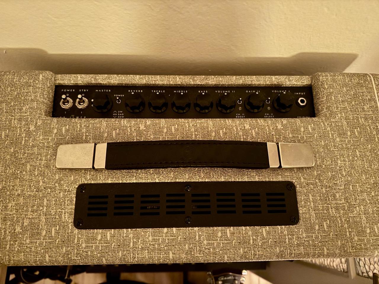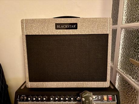 Hrané jen sporadicky na koncertech. Koupeno v r. 2023. Původní cena 25tis. Blizsi popis na https://kytary.cz/blackstar-st-james-50-el34-combo/HN243257/?source=Unknown#