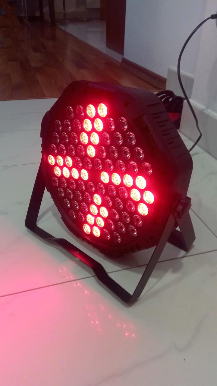 8ks LED PAR 64 (Flat placka,megapar) - 84x3W LED diod (28R.28G.28B) - úhel 25´ - režimy Auto,Sound,Manual i DMX (3 a 7 kanálů) - možnost volby solo barvy i dimmeru. - držák v balení Základní flat světlo s velmi dobrou svítivostí. Cena uvedena za kus,větší odběr dohoda. Osobní odběr Písek-Praha,případně poštou.