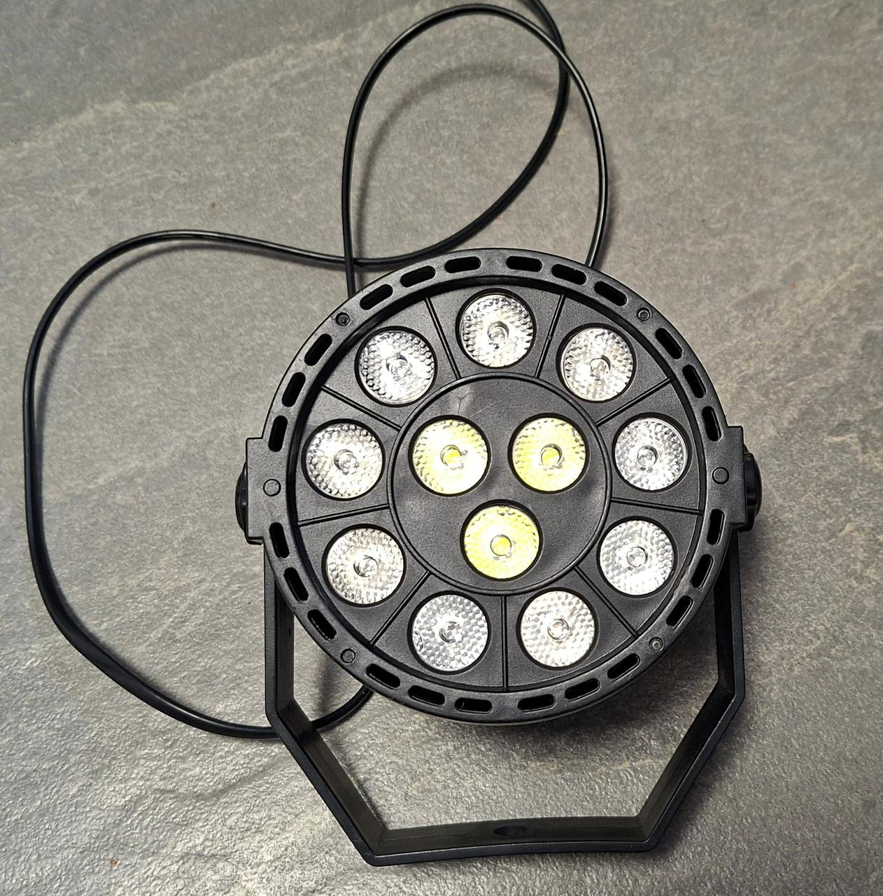 Set obsahuje: LED PAR světlo (RGBW, 12W) – ideální pro disco, party nebo stage nasvícení USB → DMX512 interface (pro ovládání přes PC) Světlo podporuje režimy DMX, Master/Slave i automatické efekty. Možnost ovládání přes software nebo samostatně. Stav: plně funkční, používané jen příležitostně.