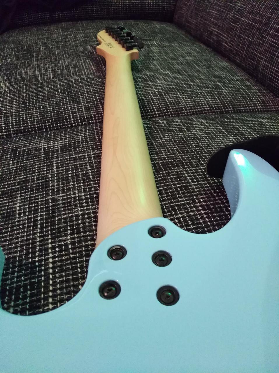 * Stav Like NEW *PEVNY KUFR *Body MAPLE-Construction Bolt-On *Neck MAPLE-Fretboard MAPLE *Frets Medium Jumbo 185HV *Pickup Configuration Fanned H/S/H Alnico V with Output 13.5K Neck , 17.5K Bridge,Tuma Pick.Middle *Controls Killswitch / Vol / 5-Way Blade Switch *Bridge : Legator Monorails *Tuning Machines-Lock Tuners *Hardware Black *Neck Dimensions-Scale 25.5" - 27" *Thickness at Nut 20mm *Thickness at 12th Fret 21mm *Radius 14R