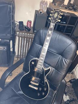 Prodám tuto kytaru od mistra Kasugy z Japonska. Kasuga se podílel s Lespolem na tomto tvaru a koncepci kytary,proto je i vyráběl. Značka MAYA a pak i toto.Je stavěná sendvičově,to je 3x plocha. Krk je šroubovaný,snímače Gibson.nově. Staré původní mám uloženy,budou v ceně,mužu po domluvě instalovat zpět.Dal jsem struny Dadario 8,pro pohodičku.Je seřízená a plně hratelná. Vyzkoušení na Marshal JTM 30,nebo Line6. I Mesa.Dá se na to hrát od klasiky po cokoli.Univerzální kytara s pěkným zvukem.Originál Gibson v této verzi se prodává za 170 tis Gibson LP 57 Black Beauty https://www.thomann.de/cz/gibson_les_paul_57_black_beauty_2pu.htm
