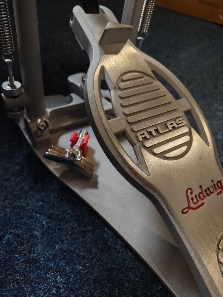 Jen možnost pořídit si něco, co mi vyhovuje trochu víc, mě přesvědčila, abych tenhle prodal. Pedál má páskový, tak i dvojřetězový převod. Můžete vyměnit dle libosti. Já osobně používal pásky, protože dochází k menšímu tření a pedál je pak ovládán s menší námahou a nohy víc vydrží. Řetězy jsou k tomu 2 páry a to vlastně nehrané. Jeden pár jsem jen zkusil a hned sundal. Šlapka má něco za sebou, ale staral jsem se o ni s maximální péčí. Takže je v zánovním stavu. Nese známky běžného používání, které se projeví po pár hodinách hry. Opotřebení je nejvíc znát na beaterech, které jsou ale parádní a vydrží ještě hodně hodně dlouho. K tomu je originál Ludwig ladící (utahovací) klíč. A zdarma přidám tašku Tama, v ceně 1.599,- Kč. Původní cena pedálu byla 14.500,-