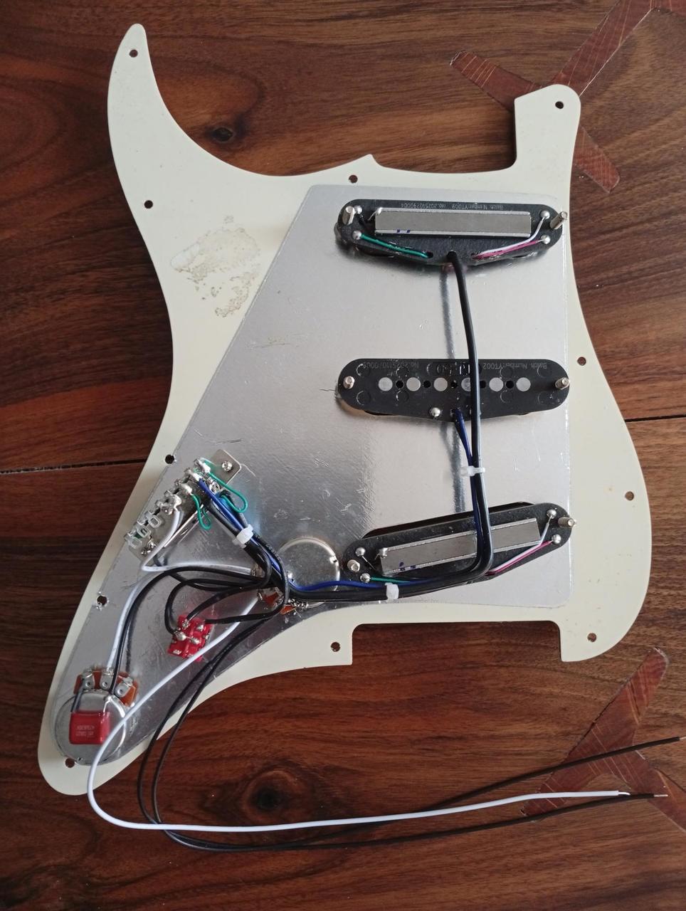 na Stratocaster - osazený tak jak vidíte, střední snímač alnico5 6,5k , krk 9,5 , kobyla 10 k, Dua...