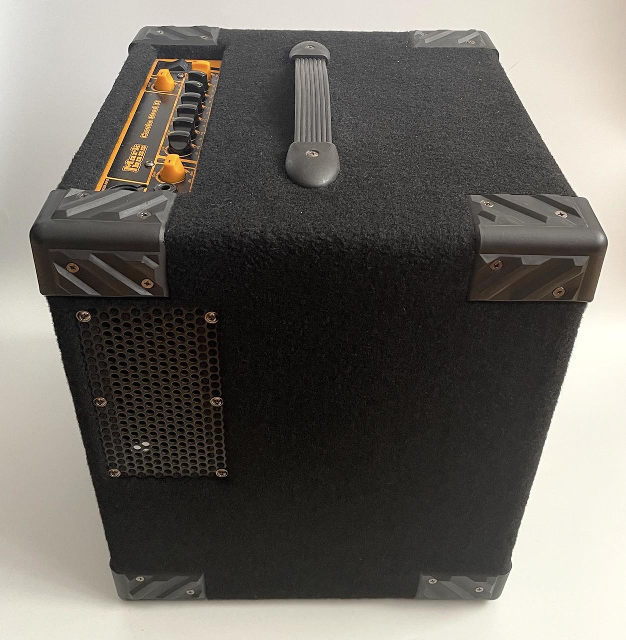 Malé a lehounké kombo pro baskytaru i kontrabas, s vysokým výkonem 300 W, s externím boxem 500 W! Repro 12" + piezoo tweeter. SPL 99 dB. Rozměry: 38x42,5x36 cm, 12 kg. Ke kombu je original silně polstrovaný obal. Kombo je po preventivní servisní prohlídce, nový ventilátor (starý je v pořádku a přidám jako náhradní). Ovládání: GAIN + LED kontrolka clippingu, korekce basy-nízké středy-vysoké středy-výšky, VLE knob pro simulaci "vintage" zvuku, VPF knob - filtr vytvářející klasické „véčko“ jako EQ, MASTER knob pro celkovou hlasitost. Výstup pro ladičku, vstup a výstup efektové smyčky, řazení ekvalizace PRE-EQ/POST-EQ, omezovač šumu GROUND LIFT a XLR LINE OUT s regulací síly výstupu.