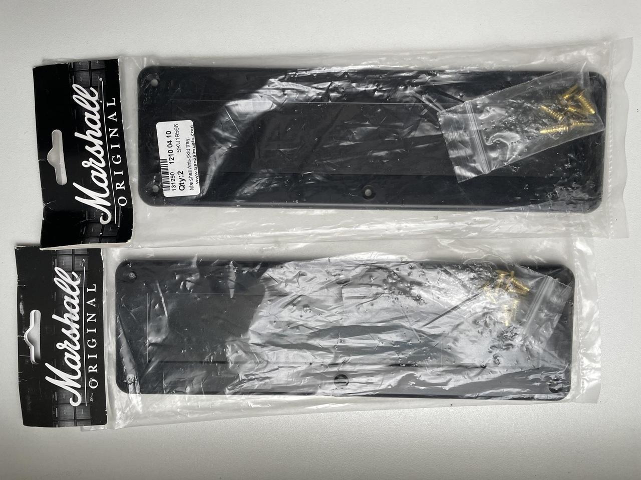 Originál podložky na reproboxy Marshall 1960, 1936 apod. Jedná se o starší verzi, ještě bez loga Marshall na nich vytlačeném. I s připevňovacími nýty. Cena za pár.